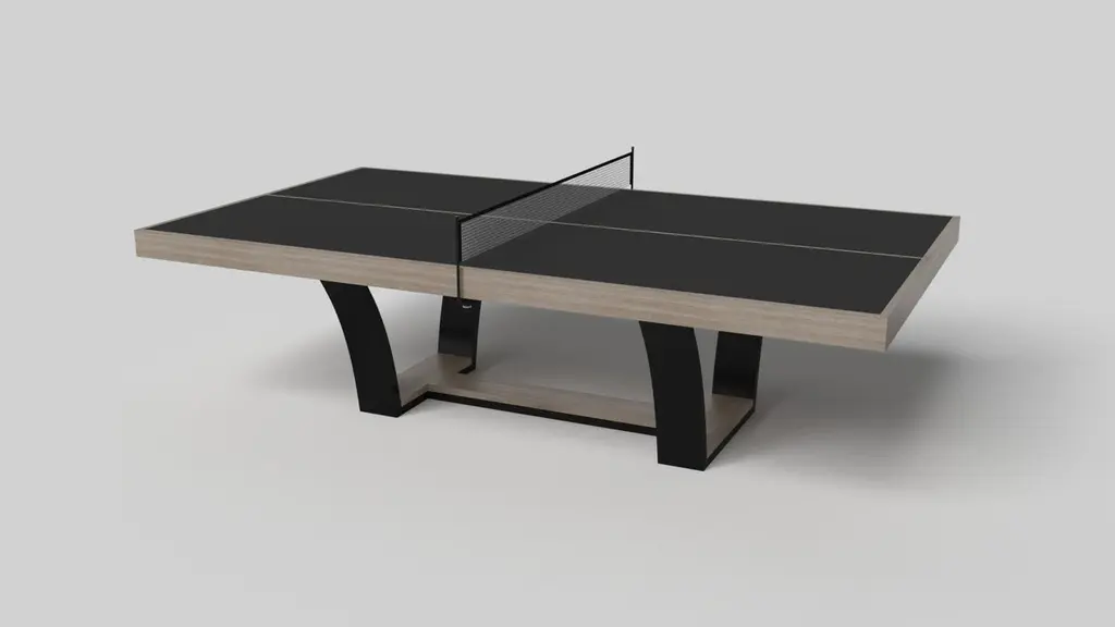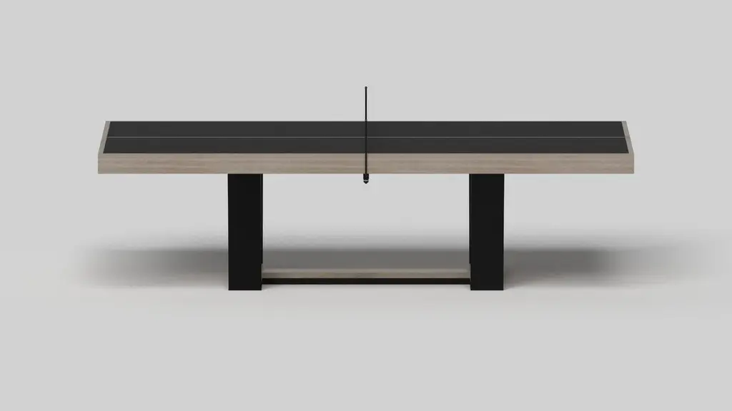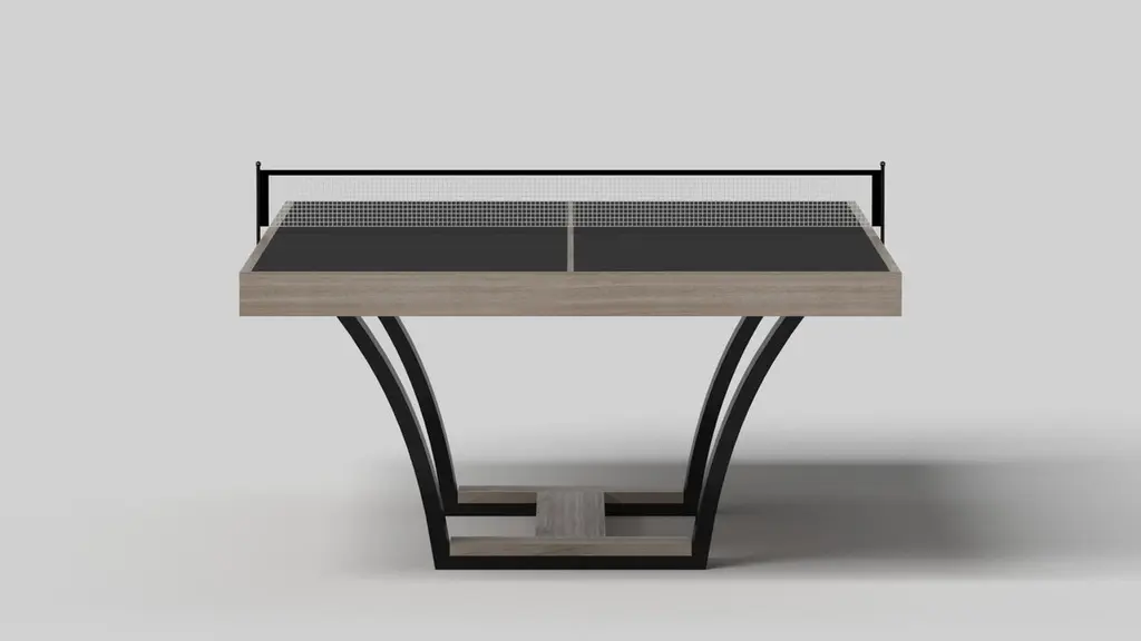 With an I-shaped metal base, slightly sloped metal legs, and a contrasting wood top, the Elite table tennis table exudes modern sophistication while evoking a sense of art deco design. This table is a confluence of style, made to meet today's demands and appeal to tomorrow's sense of style, while also harkening back to the past.Size:108”X60”X30”Custom Sizes Available Per Request