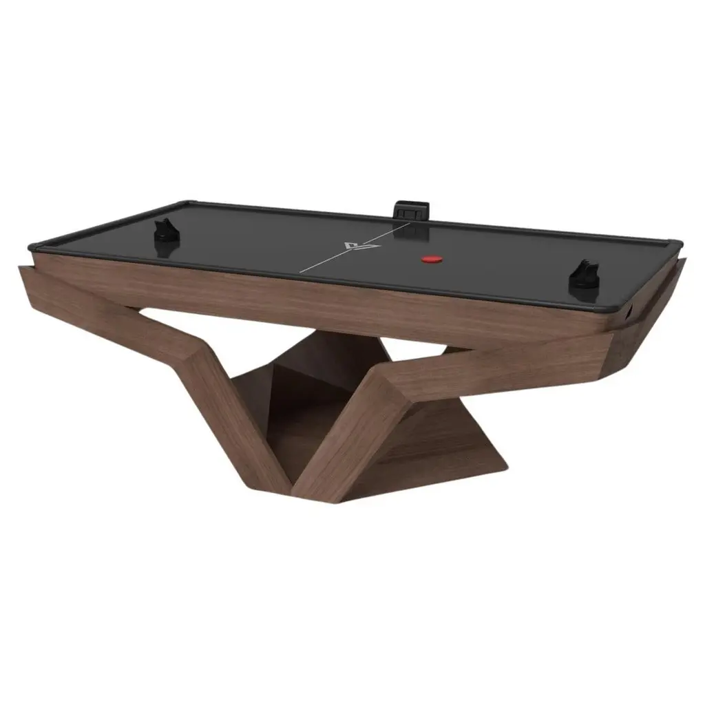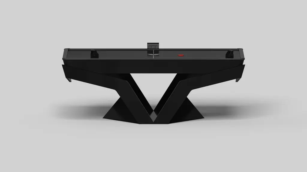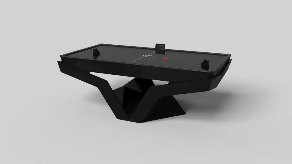 The Enzo air hockey table is Inspired by the aerodynamic angles of top-of-the-line European vehicles. Designed with sleek, V-shaped lines and a thoughtful use of negative space, this table boasts an energetic sense of spirit while epitomizing the look of luxury and evoking the sense of speed. A perfect catalyst for encouraging hours of friendly or competitive play, this handcrafted design is available in your choice of teak, white oak, curly maple, black/white, stainless steel, and custom colors.Size:88”X45”X31”