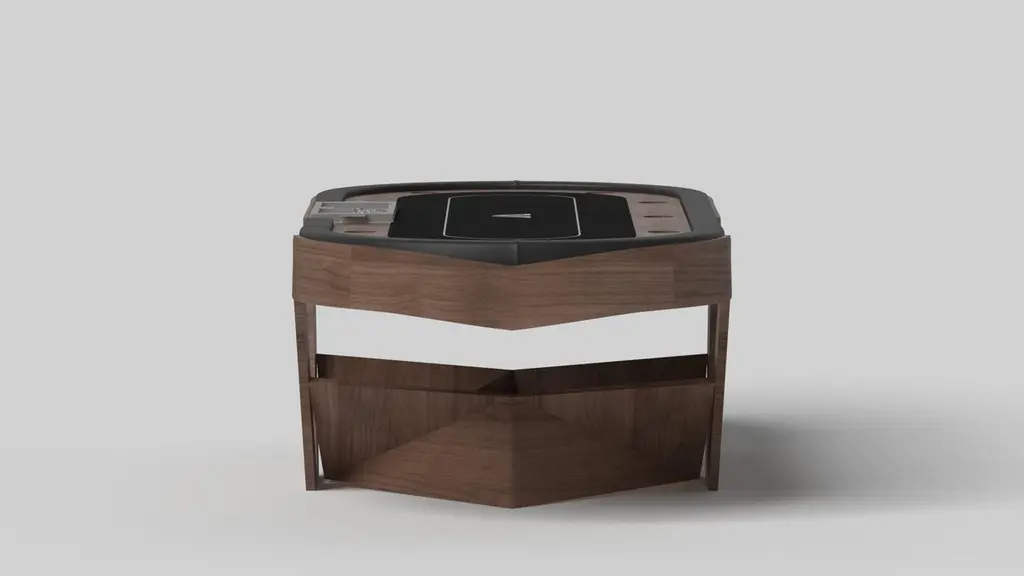 The Enzo poker table is Inspired by the aerodynamic angles of top-of-the-line European vehicles. Designed with sleek, V-shaped lines and a thoughtful use of negative space, this table boasts an energetic sense of spirit while epitomizing the look of luxury and evoking the sense of speed. A perfect catalyst for encouraging hours of friendly or competitive play, this handcrafted design is available in your choice of teak, white oak, curly maple, black/white, stainless steel, and custom colors.Size:104”X44”X30”Custom Sizes Available Per RequestCustom Table-Top Shapes Available Per Request