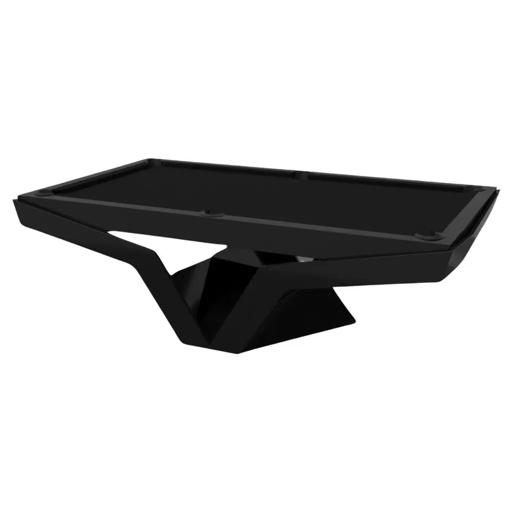 The Enzo pool table is Inspired by the aerodynamic angles of top-of-the-line European vehicles. Designed with sleek, V-shaped lines and a thoughtful use of negative space, this table boasts an energetic sense of spirit while epitomizing the look of luxury and evoking the sense of speed. A perfect catalyst for encouraging hours of friendly or competitive play, this handcrafted design is available in your choice of teak, white oak, curly maple, black/white, stainless steel, and custom colors.Size:9 Foot – 113”X63”Playing Area: 100”X50”
