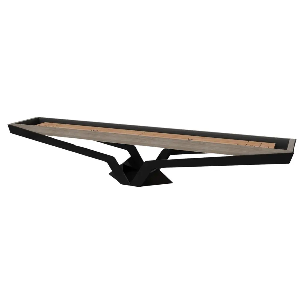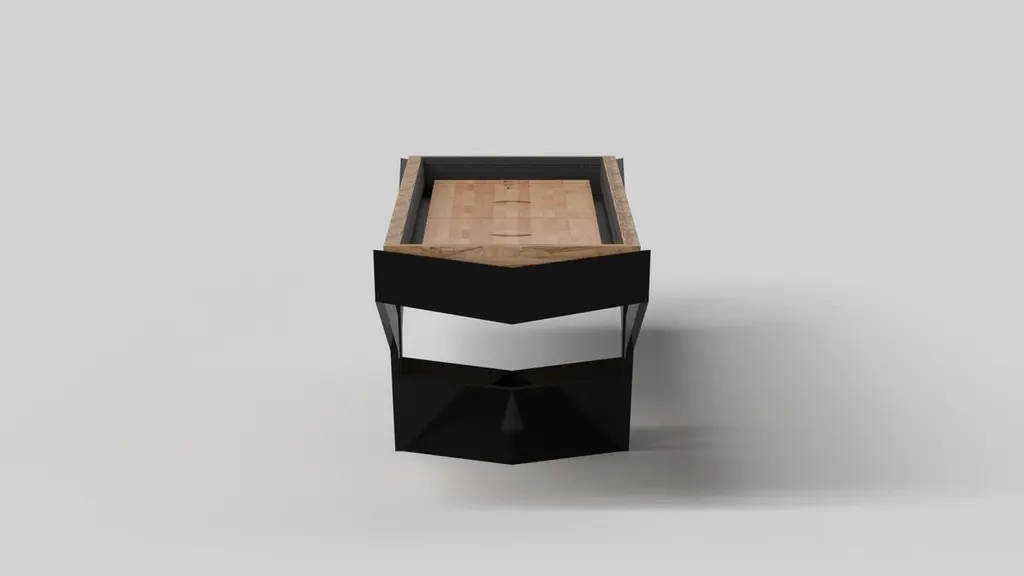 The Enzo shuffleboard table is Inspired by the aerodynamic angles of top-of-the-line European vehicles. Designed with sleek, V-shaped lines and a thoughtful use of negative space, this table boasts an energetic sense of spirit while epitomizing the look of luxury and evoking the sense of speed. A perfect catalyst for encouraging hours of friendly or competitive play, this handcrafted design is available in your choice of teak, white oak, curly maple, black/white, stainless steel, and custom colors.Size:18 Foot - 216”X32”X34”Playing Area Of 200”X20”