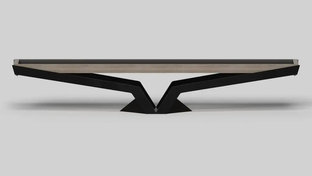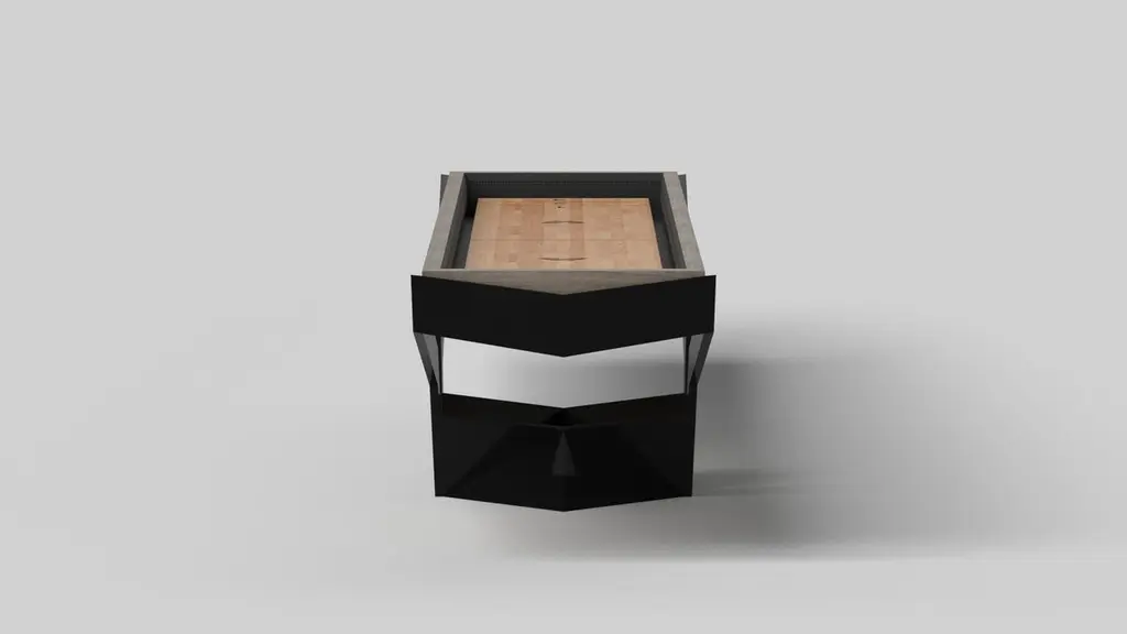 The Enzo shuffleboard table is Inspired by the aerodynamic angles of top-of-the-line European vehicles. Designed with sleek, V-shaped lines and a thoughtful use of negative space, this table boasts an energetic sense of spirit while epitomizing the look of luxury and evoking the sense of speed. A perfect catalyst for encouraging hours of friendly or competitive play, this handcrafted design is available in your choice of teak, white oak, curly maple, black/white, stainless steel, and custom colors.Size:22 Foot - 264”X32”X34”Playing Area Of 248”X20”
