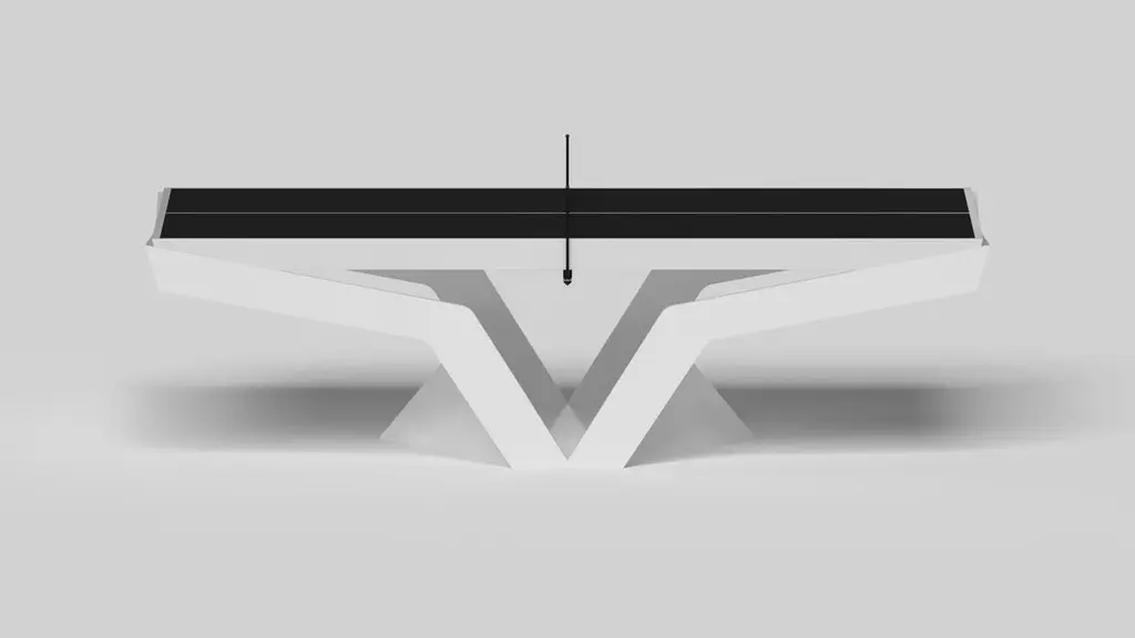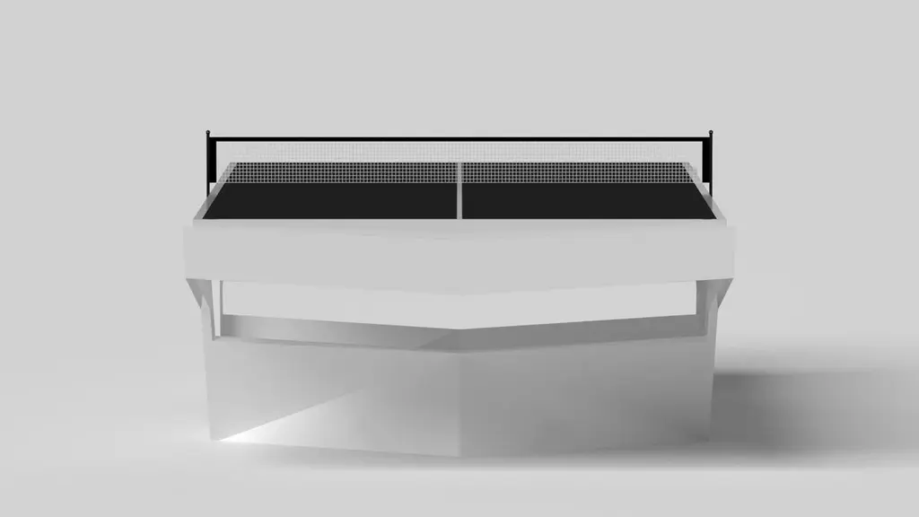 The Enzo table tennis table is Inspired by the aerodynamic angles of top-of-the-line European vehicles. Designed with sleek, V-shaped lines and a thoughtful use of negative space, this table boasts an energetic sense of spirit while epitomizing the look of luxury and evoking the sense of speed. A perfect catalyst for encouraging hours of friendly or competitive play, this handcrafted design is available in your choice of teak, white oak, curly maple, black/white, stainless steel, and custom colors.Size:108”X60”X30”Custom Sizes Available Per Request