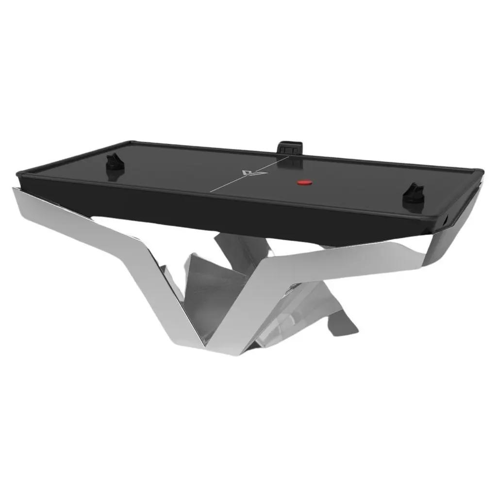 In chrome metal, the Kors air hockey table is a superior example of contrasting geometric forms. This table features an angular base that highlights the beauty of negative space from the front view. From the side view, it offers a completely different perspective with unexpected dimensional details that demand attention. The end result is a clean, modern design that offers equal parts style, sophistication, and superior playability.Size:88”X45”X31”
