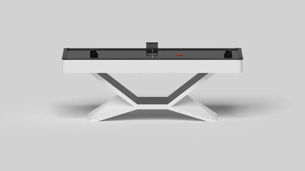 In chrome metal, the Kors air hockey table is a superior example of contrasting geometric forms. This table features an angular base that highlights the beauty of negative space from the front view. From the side view, it offers a completely different perspective with unexpected dimensional details that demand attention. The end result is a clean, modern design that offers equal parts style, sophistication, and superior playability.Size:88”X45”X31”