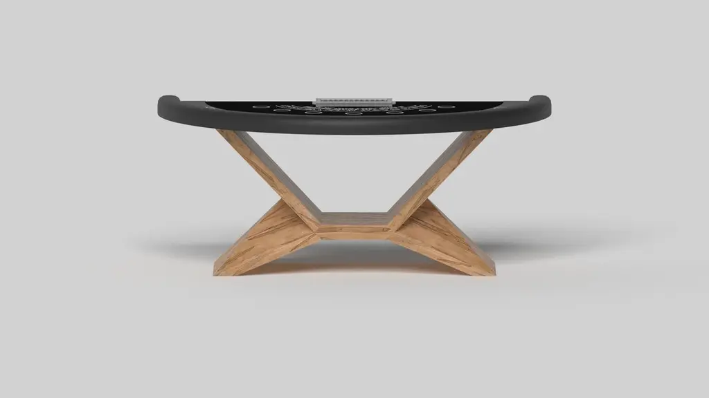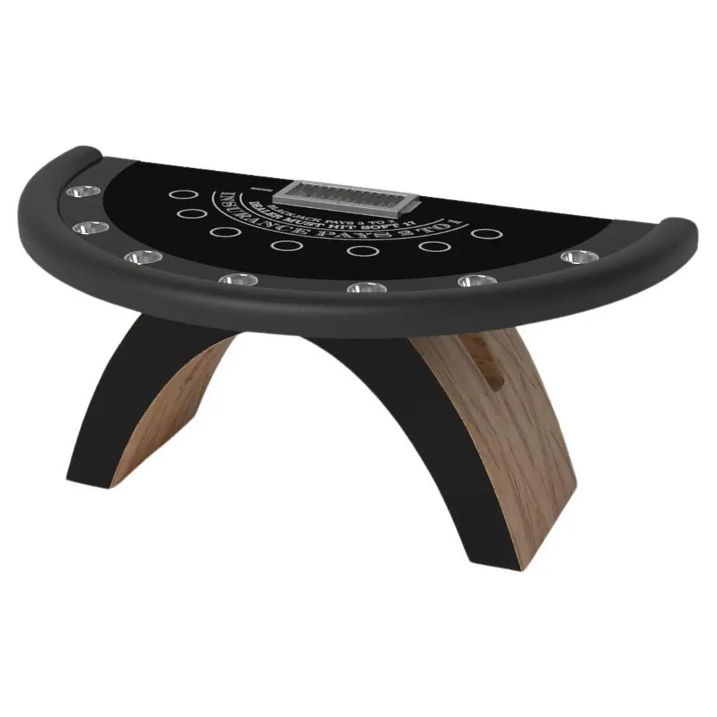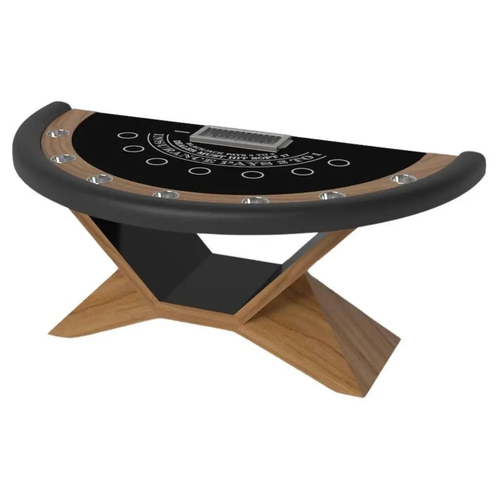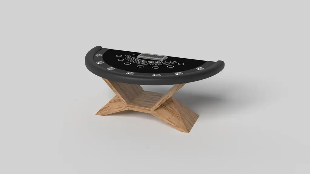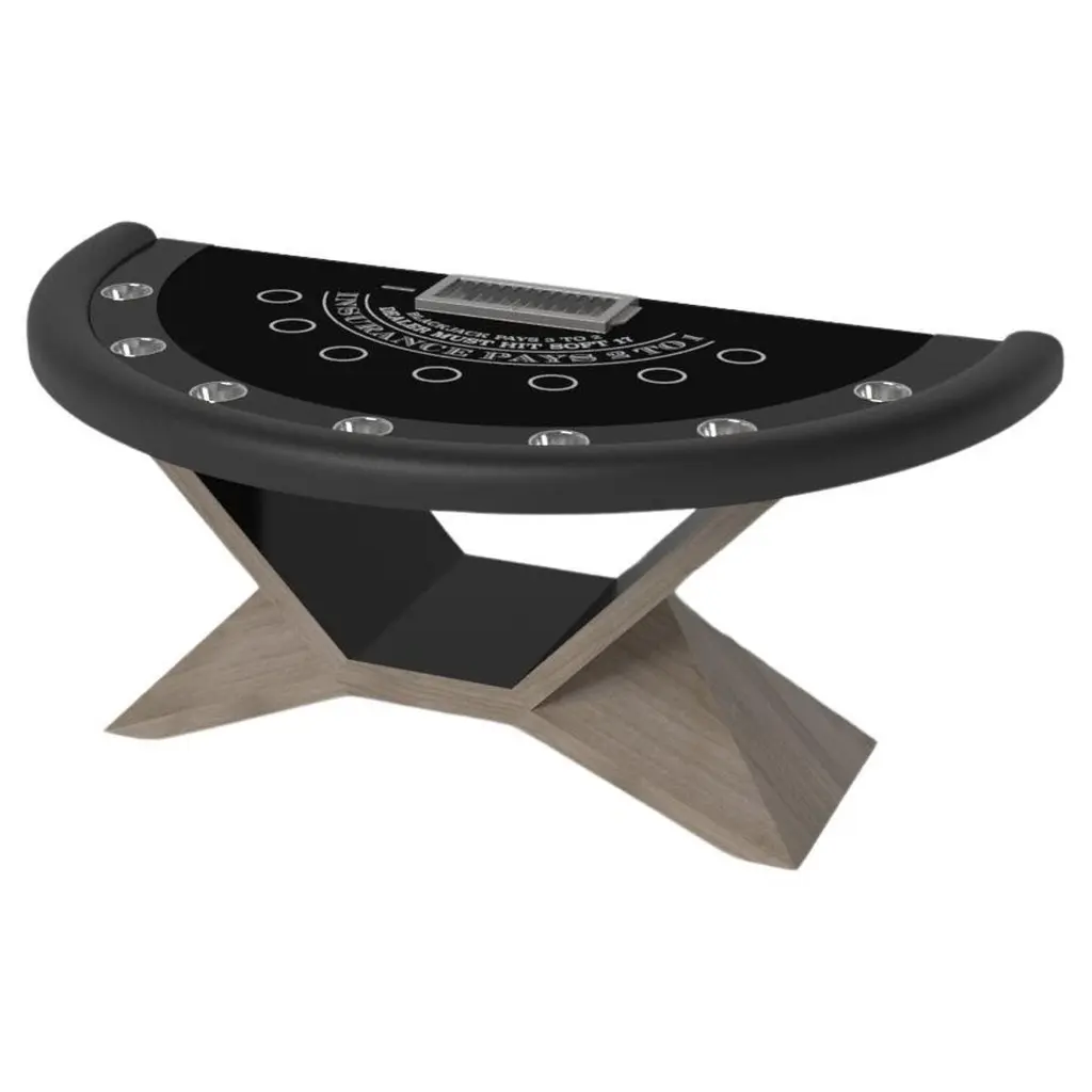 In chrome metal, the Kors blackjack table is a superior example of contrasting geometric forms. This table features an angular base that highlights the beauty of negative space from the front view. From the side view, it offers a completely different perspective with unexpected dimensional details that demand attention. The end result is a clean, modern design that offers equal parts style, sophistication, and superior playability.Size:88”X46”X30” (Bar Height)Custom Sizes Available Per Request