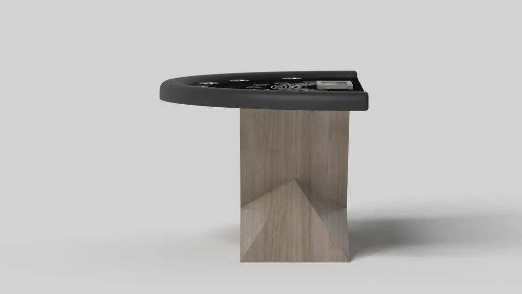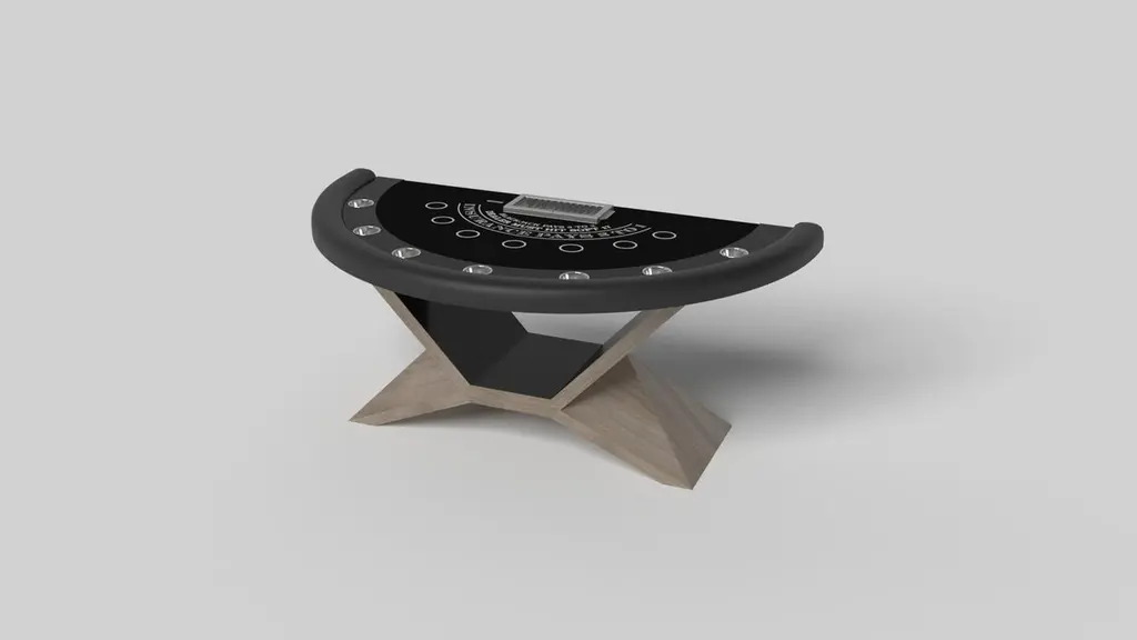 In chrome metal, the Kors blackjack table is a superior example of contrasting geometric forms. This table features an angular base that highlights the beauty of negative space from the front view. From the side view, it offers a completely different perspective with unexpected dimensional details that demand attention. The end result is a clean, modern design that offers equal parts style, sophistication, and superior playability.Size:88”X46”X30” (Bar Height)Custom Sizes Available Per Request