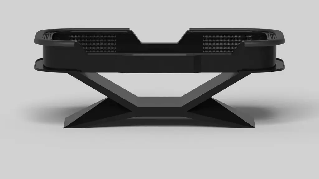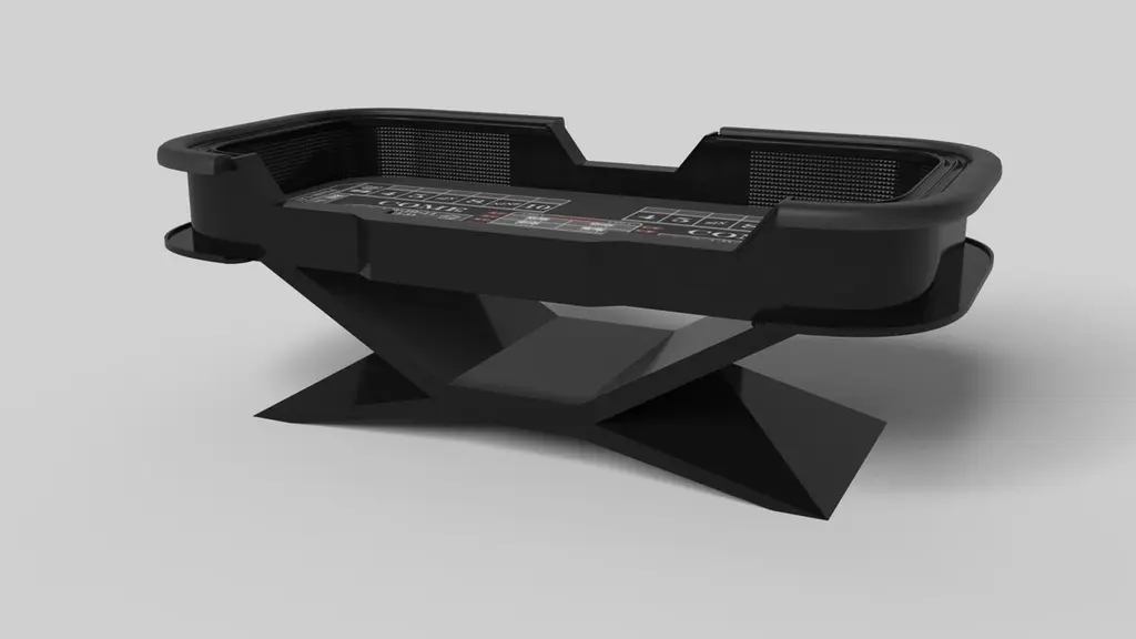 In chrome metal, the Kors craps table is a superior example of contrasting geometric forms. This table features an angular base that highlights the beauty of negative space from the front view. From the side view, it offers a completely different perspective with unexpected dimensional details that demand attention. The end result is a clean, modern design that offers equal parts style, sophistication, and superior playability.Size:117”X60”X42”Custom Sizes Available Per Request