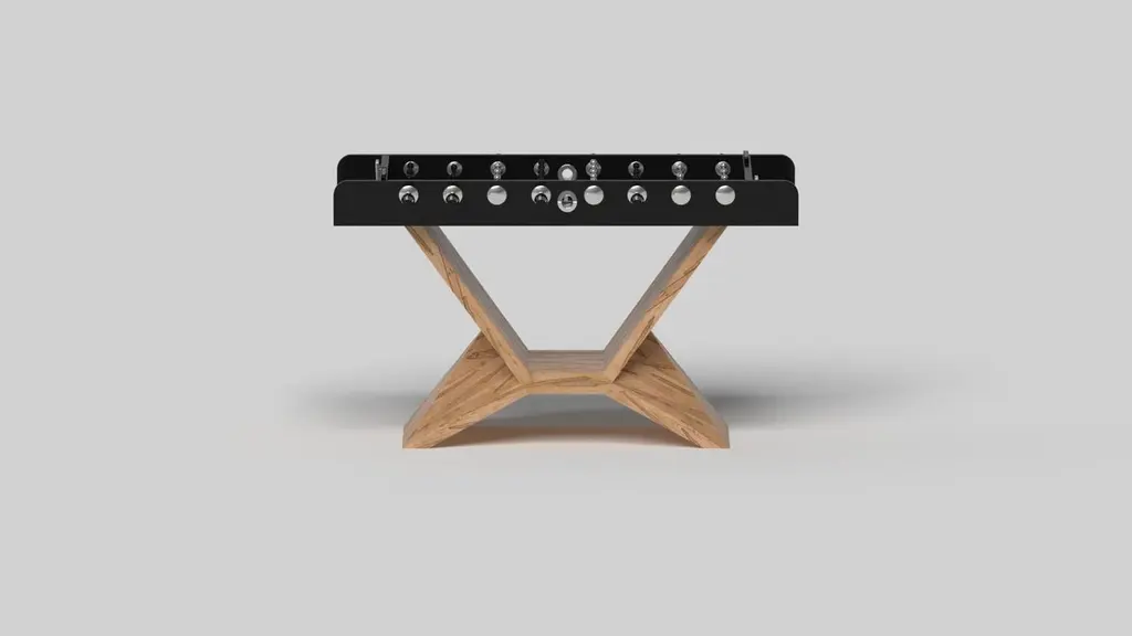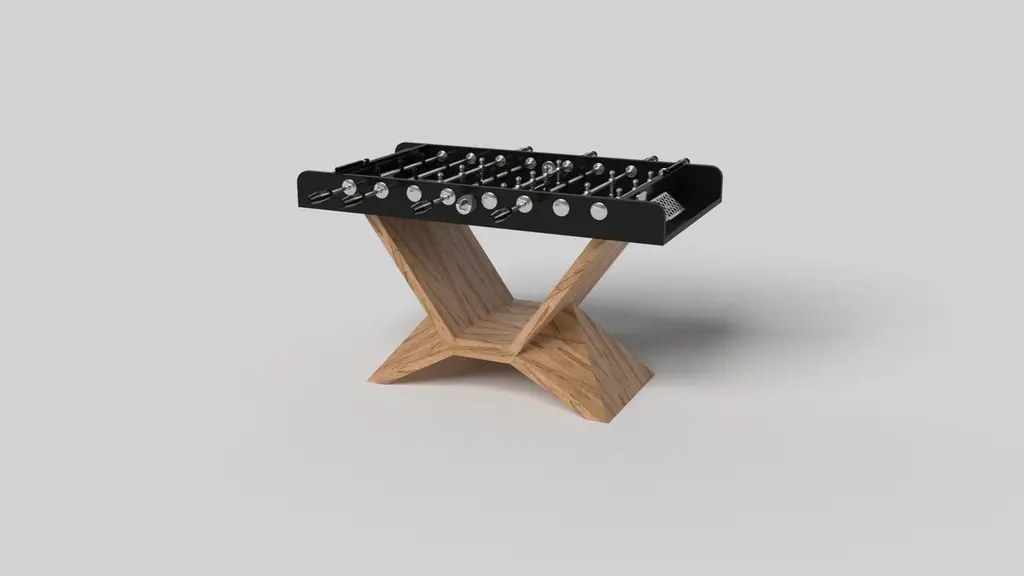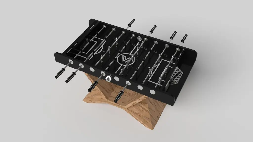 In chrome, the Kors foosball table is a superior example of contrasting geometric forms. This table features an angular base that highlights the beauty of negative space from the front view. From the side view, it offers a completely different perspective with unexpected dimensional details that demand attention. The end result is a clean, modern design that offers equal parts style, sophistication, and superior playability.Size:62”X31”X36”