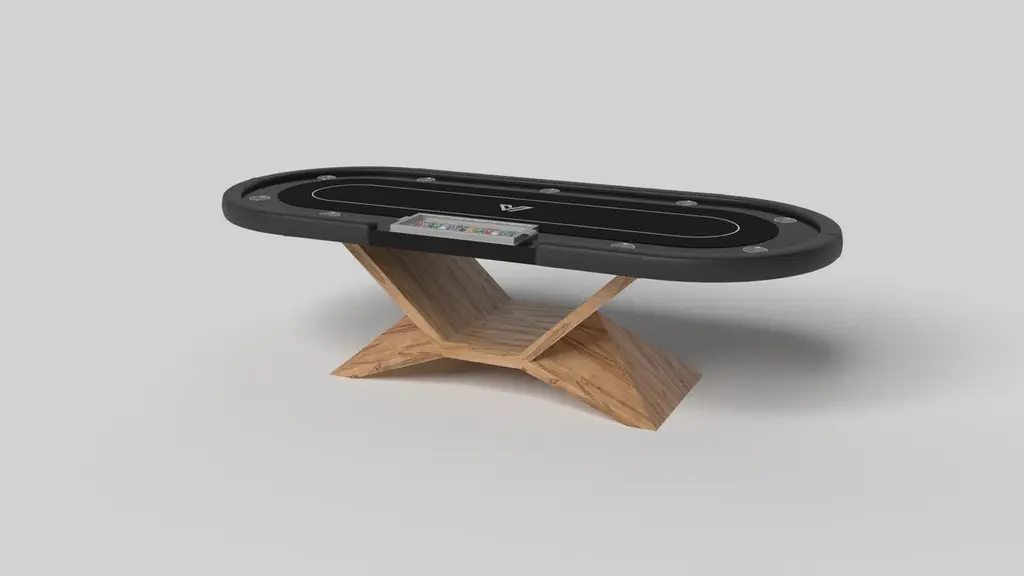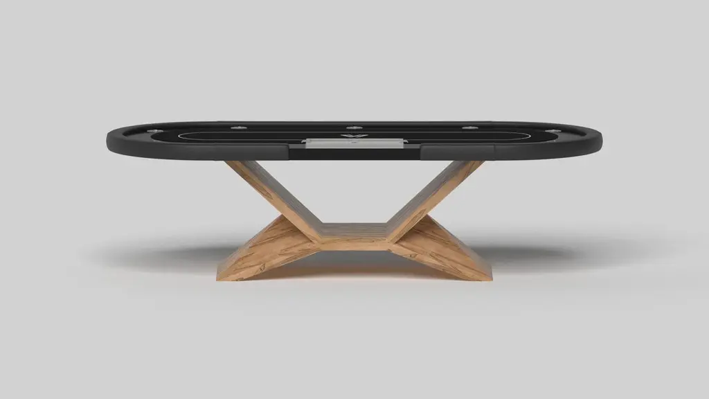 In chrome, the Kors poker table is a superior example of contrasting geometric forms. This table features an angular base that highlights the beauty of negative space from the front view. From the side view, it offers a completely different perspective with unexpected dimensional details that demand attention. The end result is a clean, modern design that offers equal parts style, sophistication, and superior playability.Size:104”X44”X30”Custom Sizes Available Per RequestCustom Table-Top Shapes Available Per Request