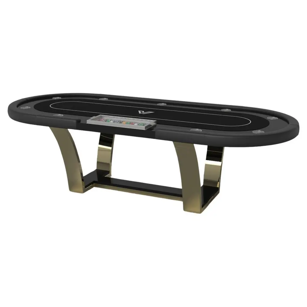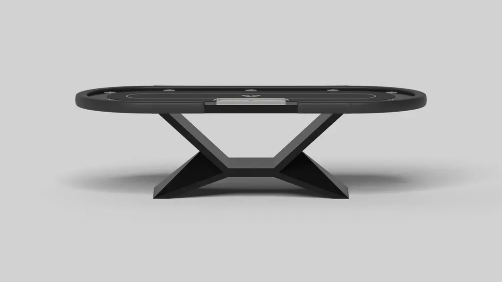 In chrome, the Kors poker table is a superior example of contrasting geometric forms. This table features an angular base that highlights the beauty of negative space from the front view. From the side view, it offers a completely different perspective with unexpected dimensional details that demand attention. The end result is a clean, modern design that offers equal parts style, sophistication, and superior playability.Size:104”X44”X30”Custom Sizes Available Per RequestCustom Table-Top Shapes Available Per Request