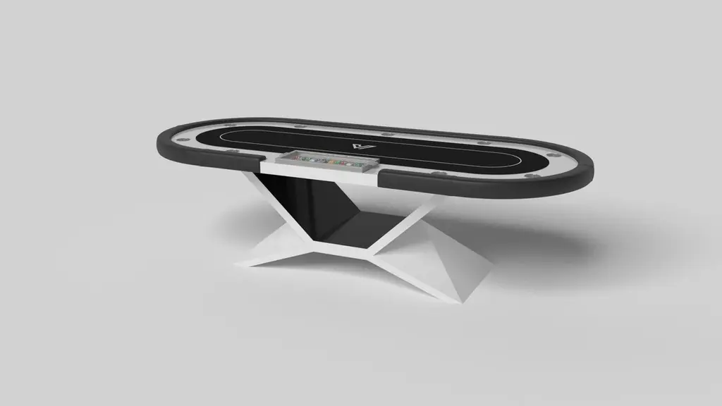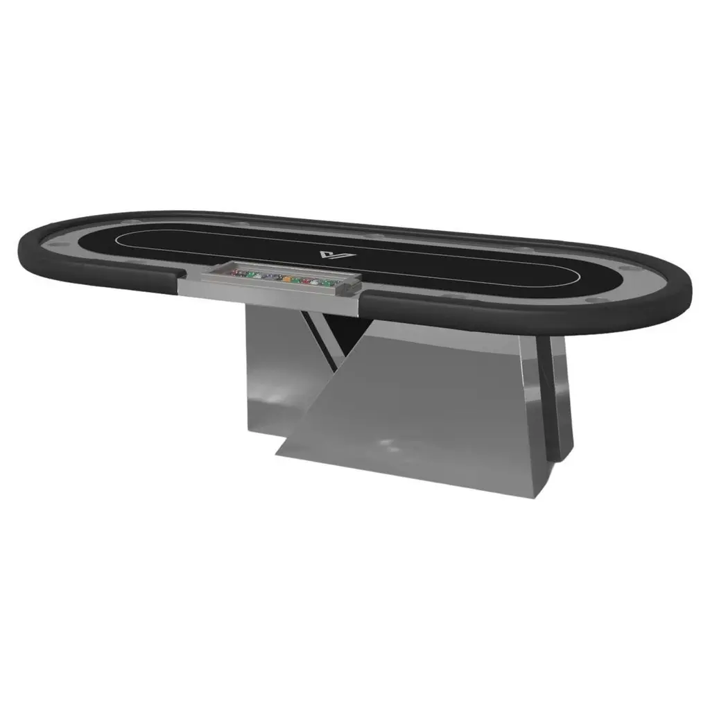 In chrome, the Kors poker table is a superior example of contrasting geometric forms. This table features an angular base that highlights the beauty of negative space from the front view. From the side view, it offers a completely different perspective with unexpected dimensional details that demand attention. The end result is a clean, modern design that offers equal parts style, sophistication, and superior playability.Size:104”X44”X30”Custom Sizes Available Per RequestCustom Table-Top Shapes Available Per Request