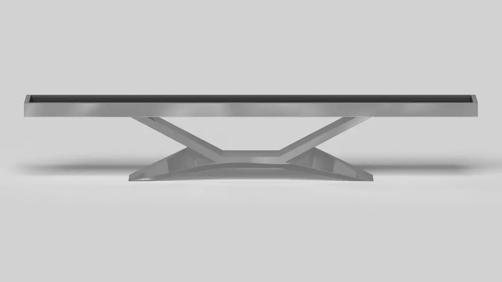 In chrome, the Kors shuffleboard table is a superior example of contrasting geometric forms. This table features an angular base that highlights the beauty of negative space from the front view. From the side view, it offers a completely different perspective with unexpected dimensional details that demand attention. The end result is a clean, modern design that offers equal parts style, sophistication, and superior playability.Size:16 Foot - 192”X32”X34”Playing Area Of 176”X20”