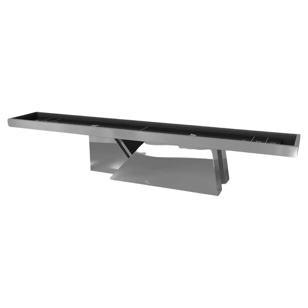 In chrome, the Kors shuffleboard table is a superior example of contrasting geometric forms. This table features an angular base that highlights the beauty of negative space from the front view. From the side view, it offers a completely different perspective with unexpected dimensional details that demand attention. The end result is a clean, modern design that offers equal parts style, sophistication, and superior playability.Size:22 Foot - 264”X32”X34”Playing Area Of 248”X20”