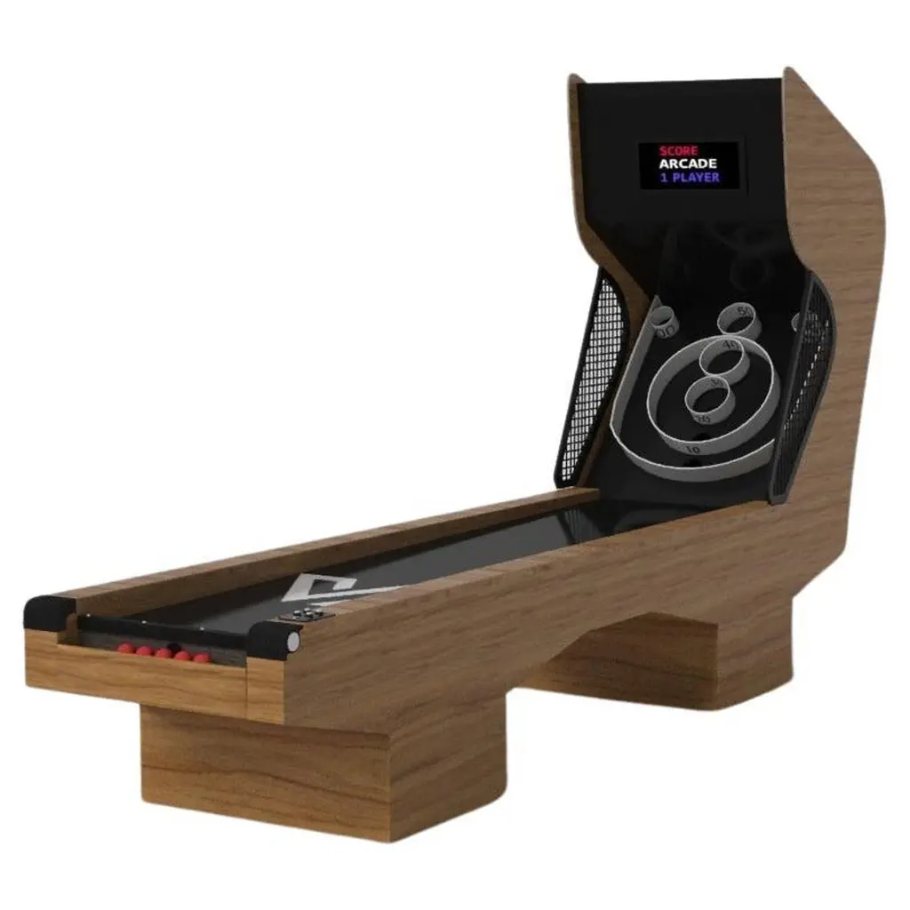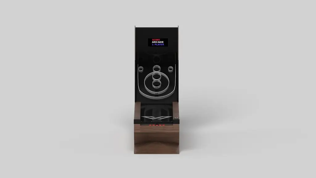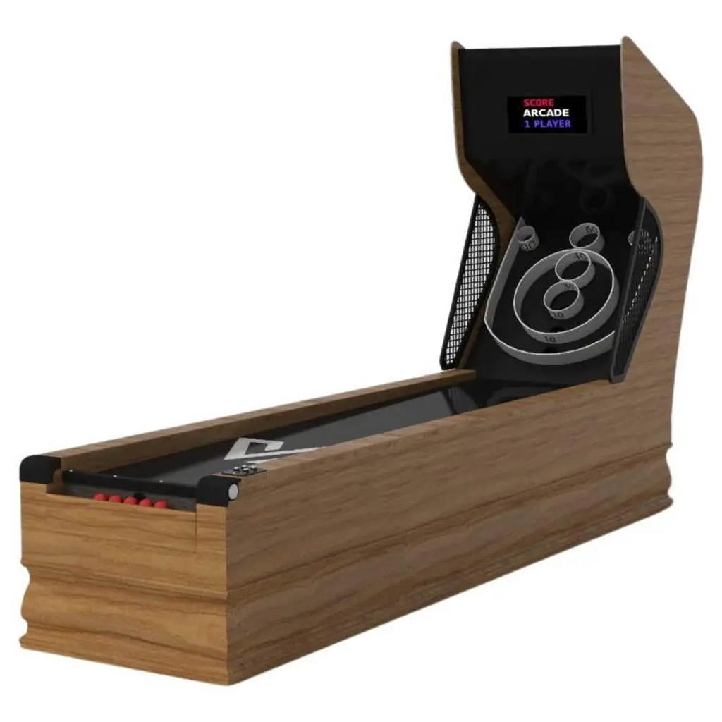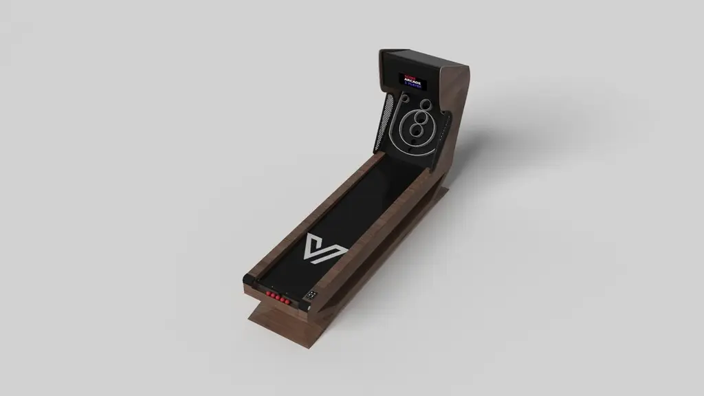 The Kors skeeball game is a superior example of contrasting geometric forms. This table features an angular base that highlights the beauty of negative space from the front view. From the side view, it offers a completely different perspective with unexpected dimensional details that demand attention. The end result is a clean, modern design that offers equal parts style, sophistication, and superior playability. Digital components, including LED lights, are built in and concealed inside.