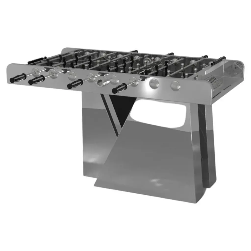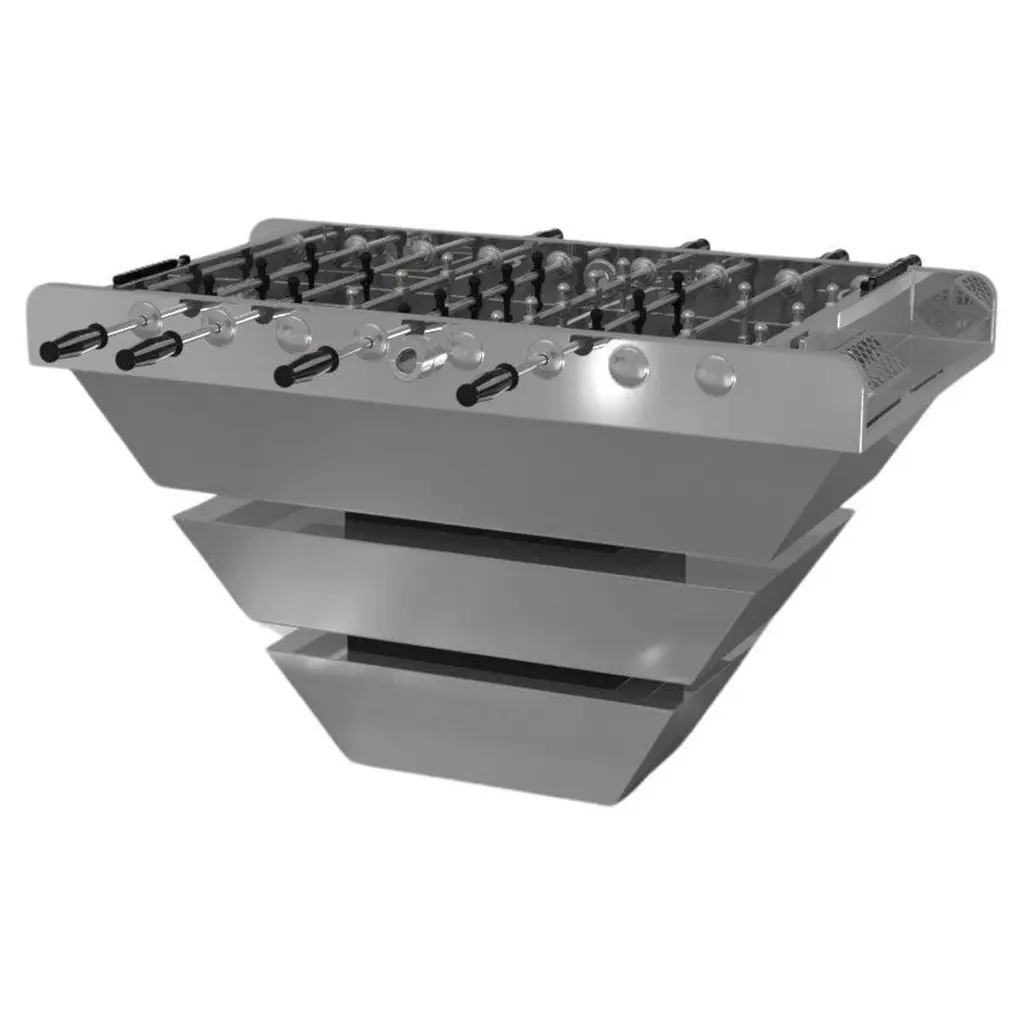 Three solid pieces of metal seemingly float around a concealed center base, making the Louve foosball table in chrome one of our most mind-bending designs. Crafted from durable metal and detailed with a regulation top, this contemporary game table features a smooth finish with a tapered base that creates a timeless pyramidal form.Size:62”X31”X36”