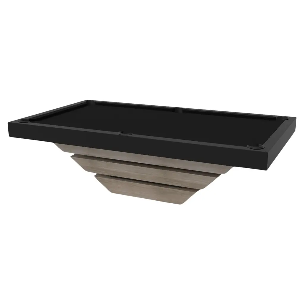 Three solid pieces of metal seemingly float around a concealed center base, making the Louve pool table in chrome one of our most mind-bending designs. Crafted from durable metal and detailed with a felt surface on top, this contemporary game table features a smooth finish with a tapered base that creates a timeless pyramidal form.Size:8.5 Foot – 108”X60”Playing Area: 92”X46”