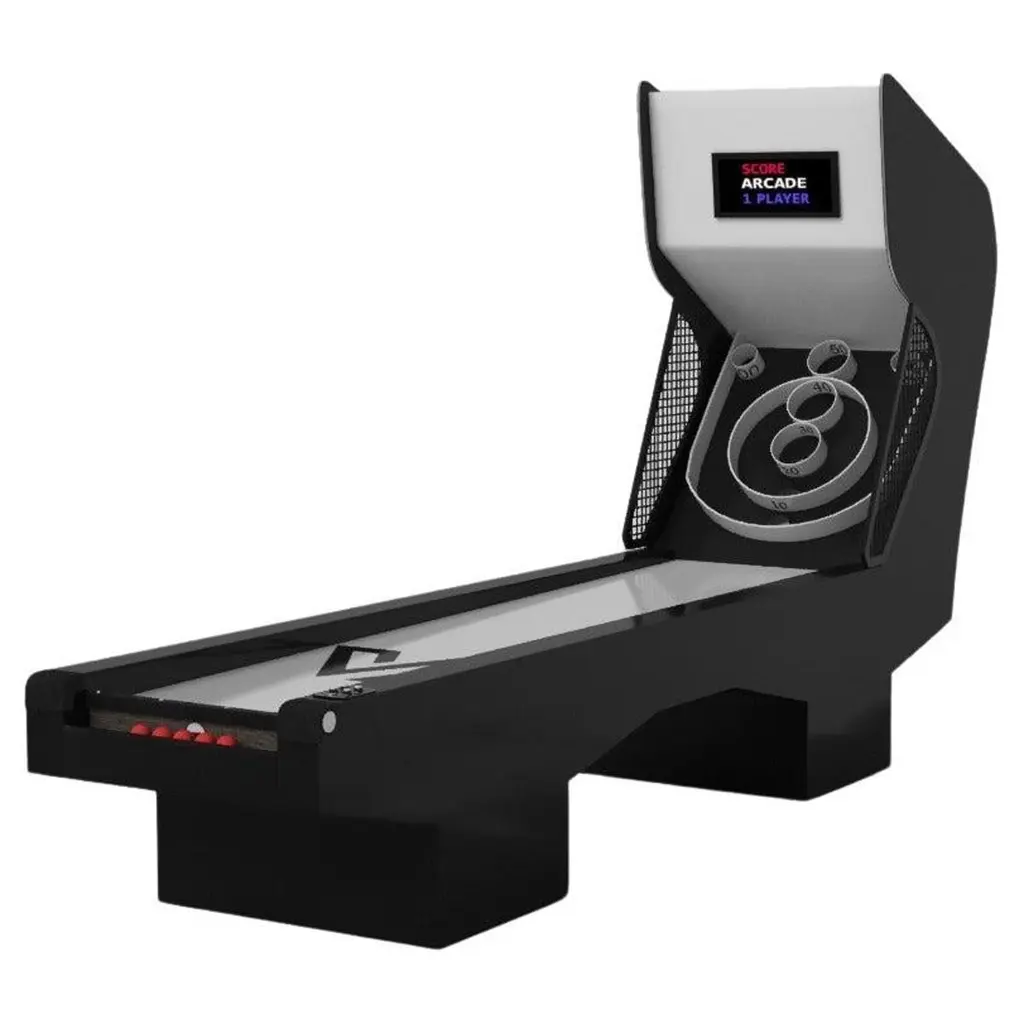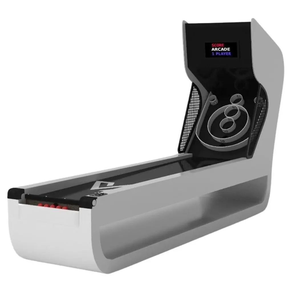 Three solid pieces of metal seemingly float around a concealed center base, making the Louve skeeball game one of our most mind-bending designs. With built-in digital components such as LED lights and sound effects, this contemporary design features a smooth finish with a tapered base that creates a timeless pyramidal form.