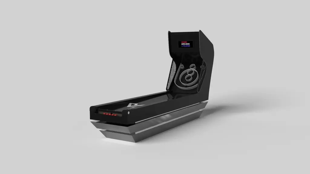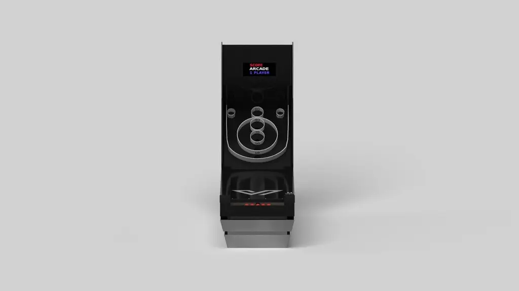 Three solid pieces of metal seemingly float around a concealed center base, making the Louve skeeball game one of our most mind-bending designs. With built-in digital components such as LED lights and sound effects, this contemporary design features a smooth finish with a tapered base that creates a timeless pyramidal form.