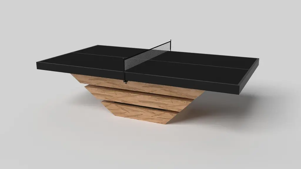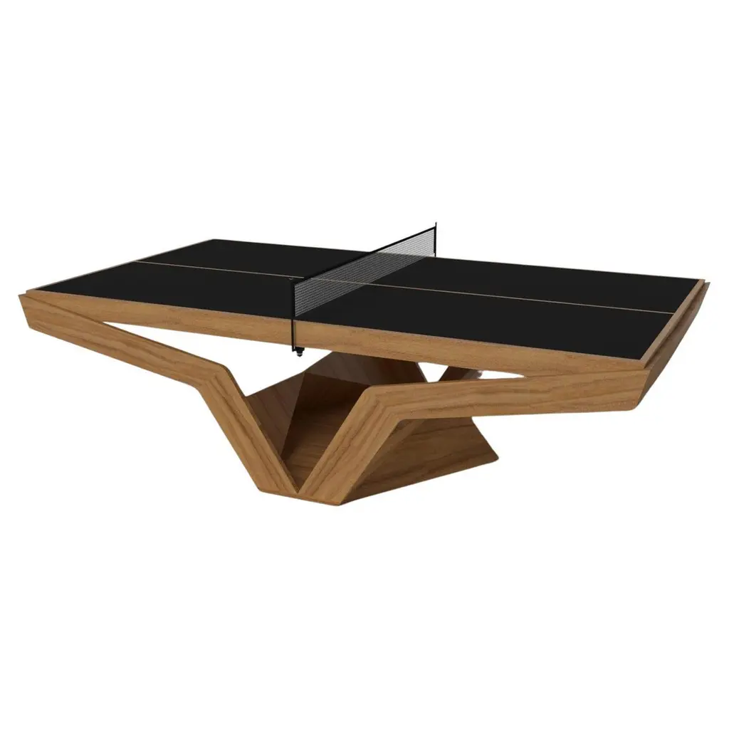 Three solid pieces of metal seemingly float around a concealed center base, making the Louve table tennis table in chrome one of our most mind-bending designs. Crafted from durable metal and detailed with a regulation net on top, this contemporary game table features a smooth finish with a tapered base that creates a timeless pyramidal form.Size:108”X60”X30”Custom Sizes Available Per Request