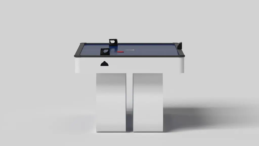 An open base with sweeping curves and smooth edges imparts a light, airy feel upon the Luge air hockey table in walnut. Evoking a sense of speed and the spirit of continuous movement, this exclusive game table features a split base with open sides and a semicircular table top that counterbalances the infinite curvature of the rounded base.Size:88”X45”X31”