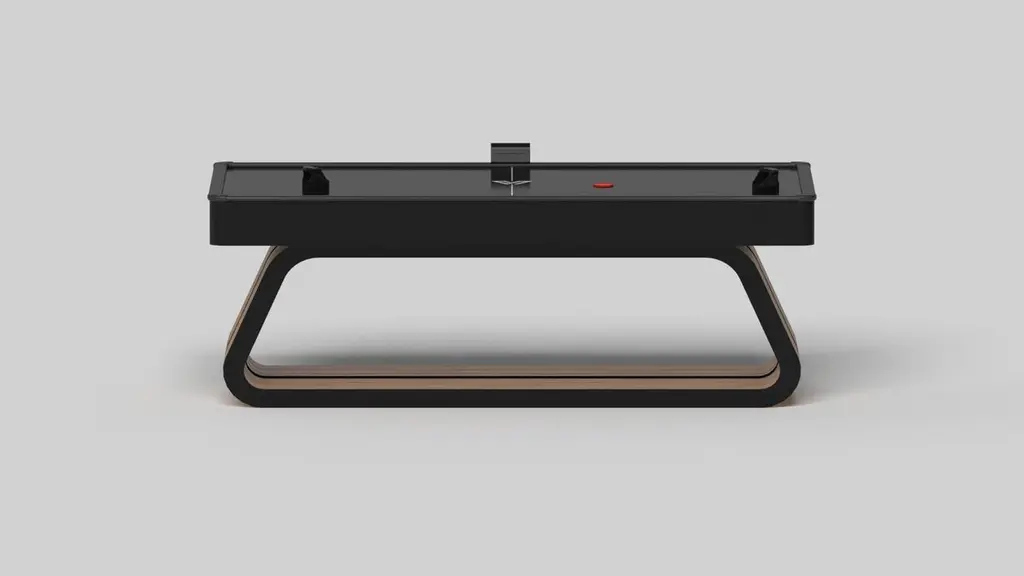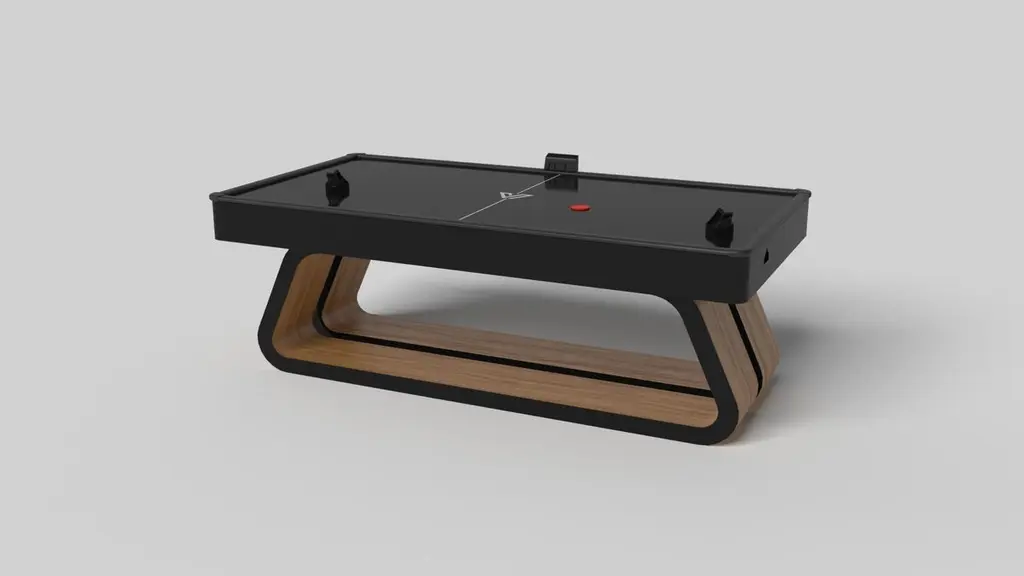 An open base with sweeping curves and smooth edges imparts a light, airy feel upon the Luge air hockey table in walnut. Evoking a sense of speed and the spirit of continuous movement, this exclusive game table features a split base with open sides and a semicircular table top that counterbalances the infinite curvature of the rounded base.Size:88”X45”X31”