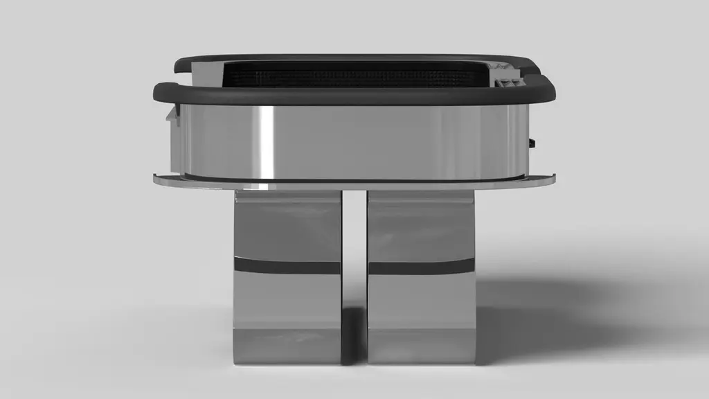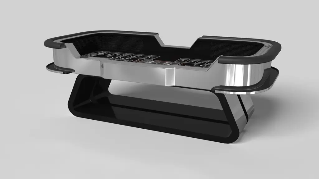 An open base with sweeping curves and smooth edges imparts a light, airy feel upon the Luge craps table in chrome. Evoking a sense of speed and the spirit of continuous movement, this exclusive game table features a split base with open sides and a rectangular table top that counterbalances the infinite curvature of the rounded base. The top is beautifully detailed with betting blocks and point boxes that encourage hours of endless game play.Size:117”X60”X42”Custom Sizes Available Per Request