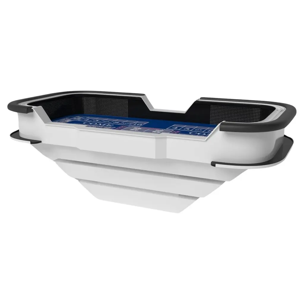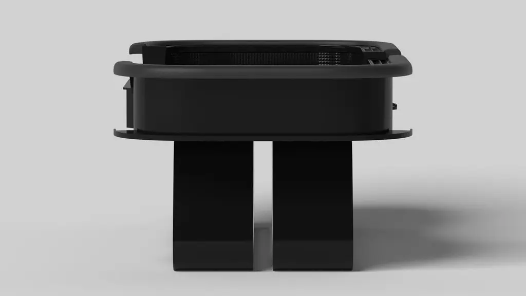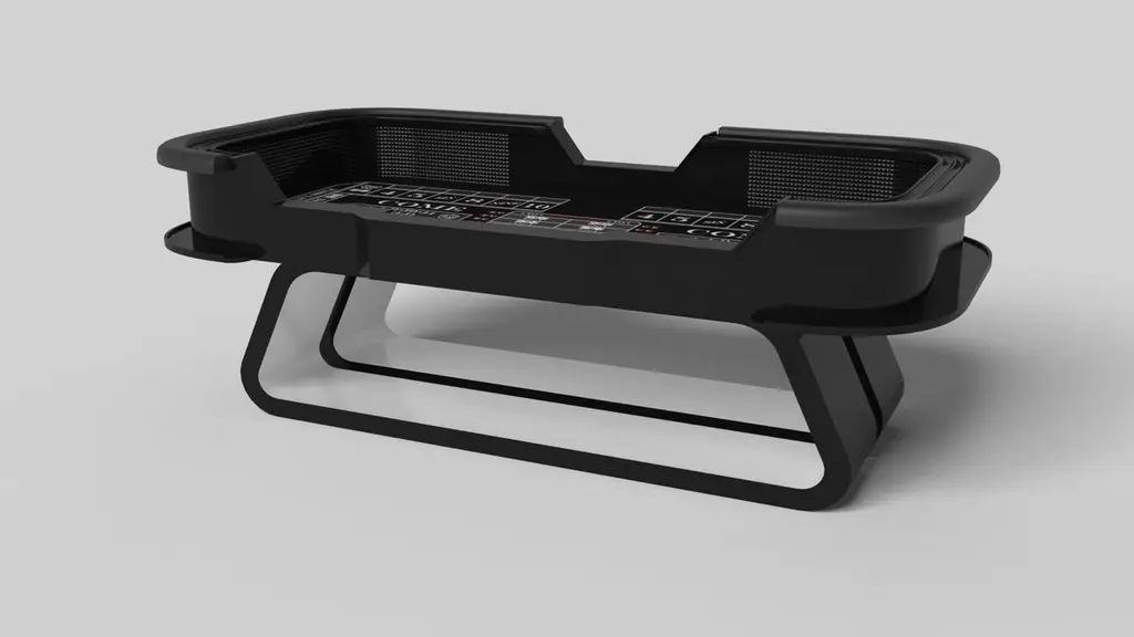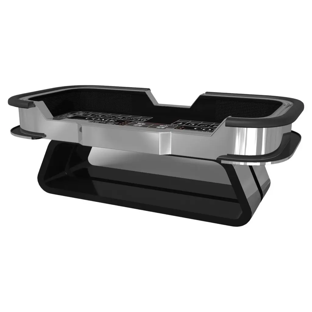 An open base with sweeping curves and smooth edges imparts a light, airy feel upon the Luge craps table in chrome. Evoking a sense of speed and the spirit of continuous movement, this exclusive game table features a split base with open sides and a rectangular table top that counterbalances the infinite curvature of the rounded base. The top is beautifully detailed with betting blocks and point boxes that encourage hours of endless game play.Size:117”X60”X42”Custom Sizes Available Per Request