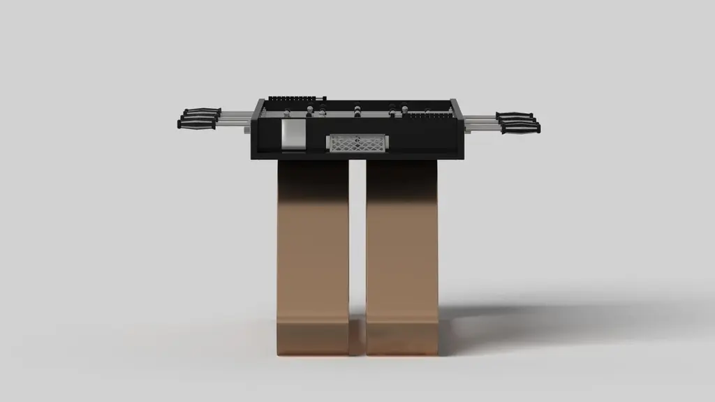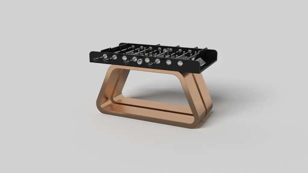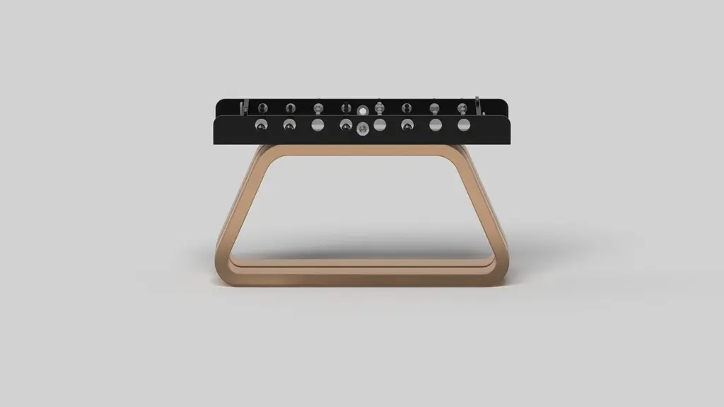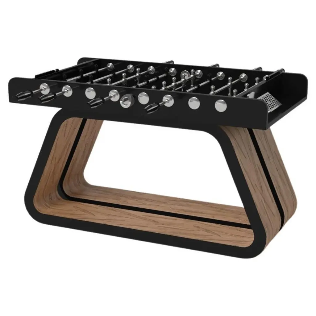 An open base with sweeping curves and smooth edges imparts a light, airy feel upon the Luge foosball table in walnut. Evoking a sense of speed and the spirit of continuous movement, this exclusive wood game table features a split base with open sides and a classic rectangular table top that counterbalances the infinite curvature of the rounded base. The top is beautifully detailed to encourage hours of endless game play.Size:62”X31”X36”