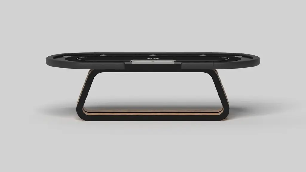 An open base with sweeping curves and smooth edges imparts a light, airy feel upon the Luge poker table in walnut. Evoking a sense of speed and the spirit of continuous movement, this exclusive wood game table features a split base with open sides and a detailed top that counterbalances the infinite curvature of the rounded base.Size:104”X44”X30”Custom Sizes Available Per RequestCustom Table-Top Shapes Available Per Request