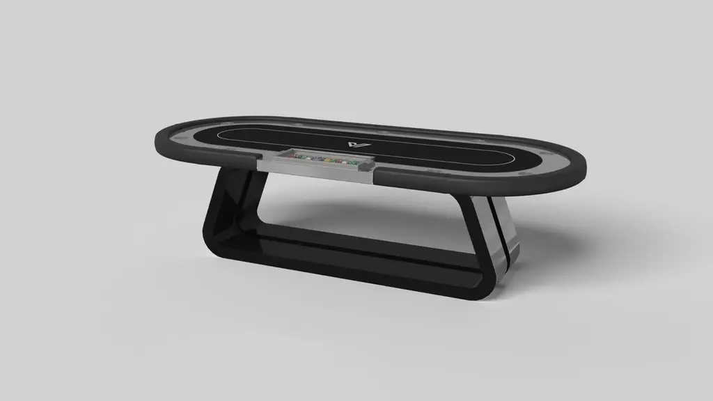 An open base with sweeping curves and smooth edges imparts a light, airy feel upon the Luge poker table in walnut. Evoking a sense of speed and the spirit of continuous movement, this exclusive wood game table features a split base with open sides and a detailed top that counterbalances the infinite curvature of the rounded base.Size:104”X44”X30”Custom Sizes Available Per RequestCustom Table-Top Shapes Available Per Request