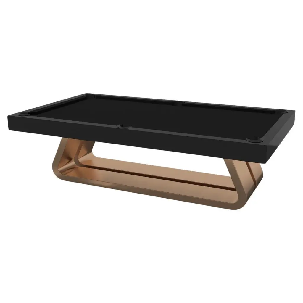 An open base with sweeping curves and smooth edges imparts a light, airy feel upon the Luge pool table in walnut. Evoking a sense of speed and the spirit of continuous movement, this exclusive wood game table features a split base with open sides and a classic rectangular table top that counterbalances the infinite curvature of the rounded base. The top is beautifully detailed with a felt surface that encourages hours of endless game play.Size:7 Foot - 91”X52”Playing Area Of 39”X78”8 Foot – 101”X57”Playing Area Of 88”X44”