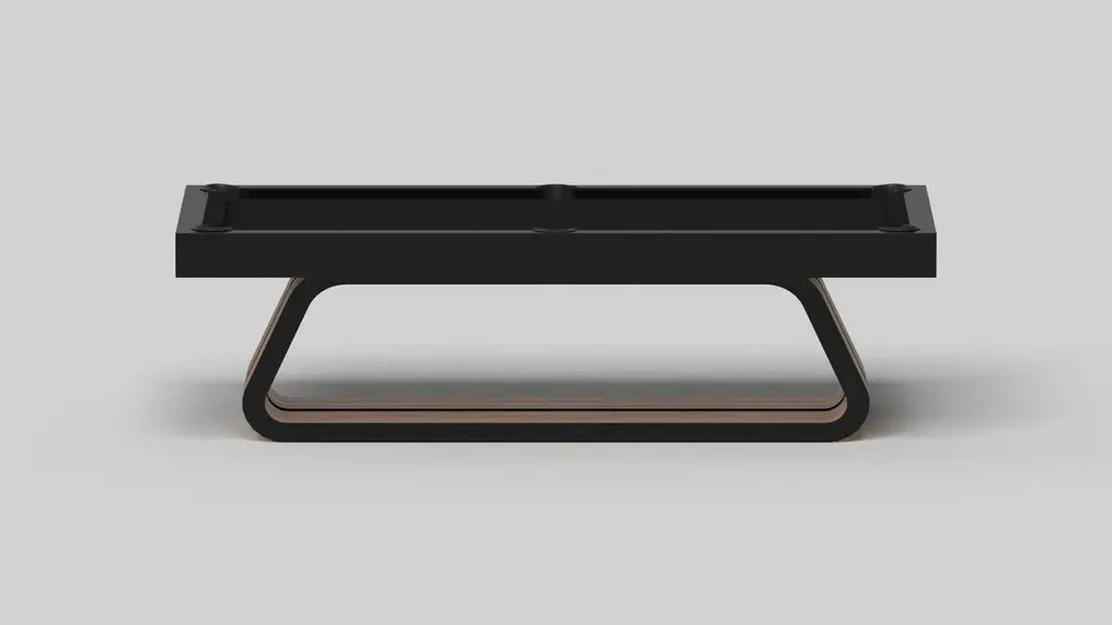 An open base with sweeping curves and smooth edges imparts a light, airy feel upon the Luge pool table in walnut. Evoking a sense of speed and the spirit of continuous movement, this exclusive wood game table features a split base with open sides and a classic rectangular table top that counterbalances the infinite curvature of the rounded base. The top is beautifully detailed with a felt surface that encourages hours of endless game play.Size:8.5 Foot – 108”X60”Playing Area: 92”X46”