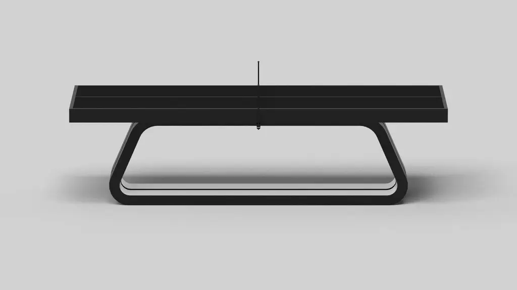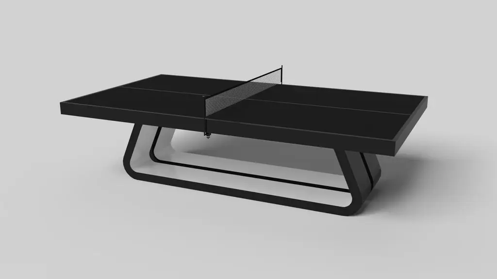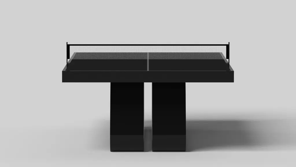An open base with sweeping curves and smooth edges imparts a light, airy feel upon the Luge table tennis table in walnut. Evoking a sense of speed and the spirit of continuous movement, this exclusive wood game table features a split base with open sides and a classic rectangular table top that counterbalances the infinite curvature of the rounded base. The top is beautifully detailed with a standard table tennis net that encourages hours of endless game play.Size:108”X60”X30”Custom Sizes Available Per Request