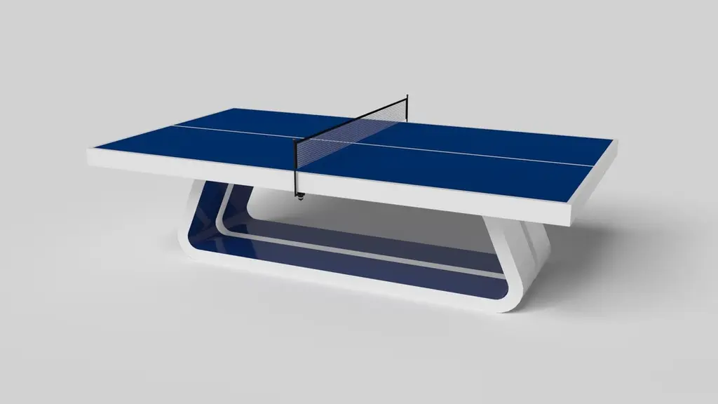An open base with sweeping curves and smooth edges imparts a light, airy feel upon the Luge table tennis table in walnut. Evoking a sense of speed and the spirit of continuous movement, this exclusive wood game table features a split base with open sides and a classic rectangular table top that counterbalances the infinite curvature of the rounded base. The top is beautifully detailed with a standard table tennis net that encourages hours of endless game play.Size:108”X60”X30”Custom Sizes Available Per Request