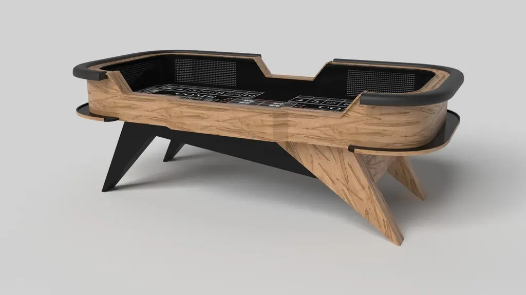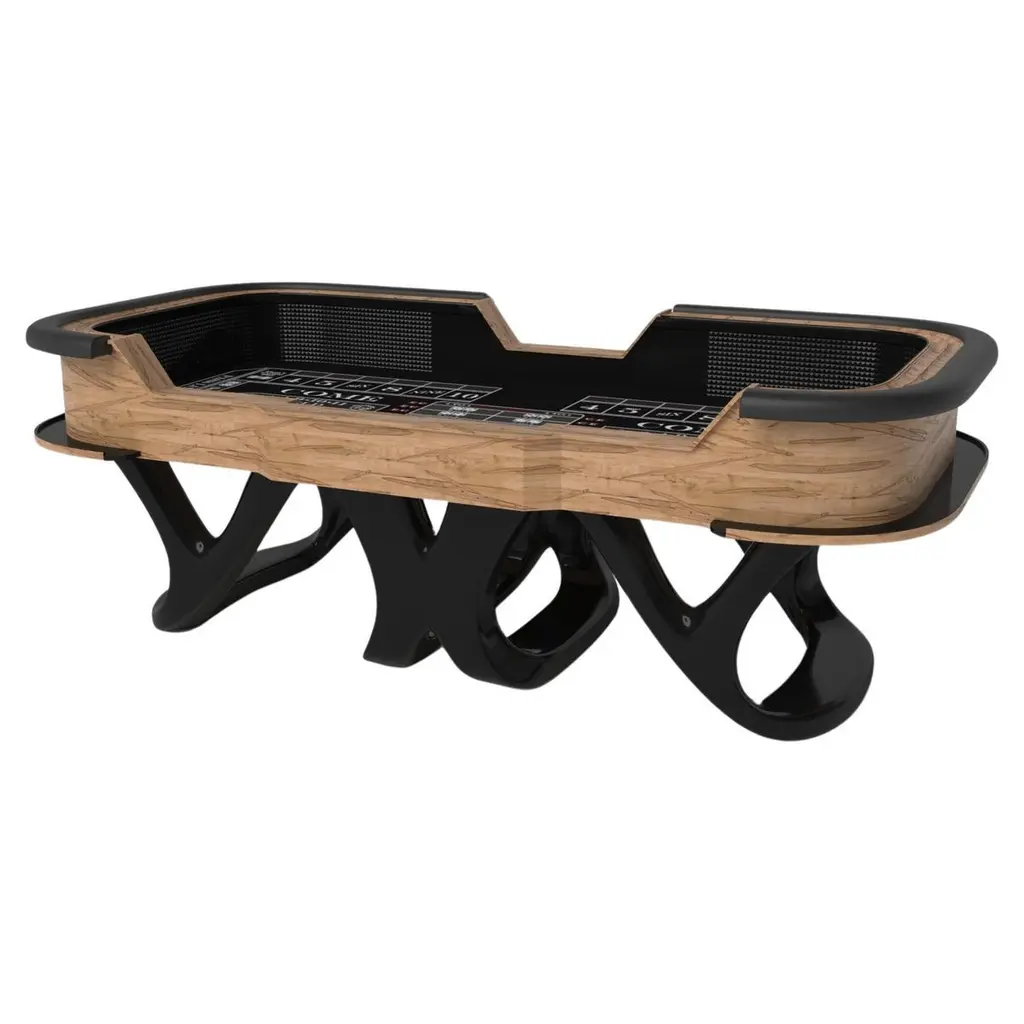 Simple yet sophisticated, the Mantis craps table puts a fresh, modern spin on a classic four-legged design. Sharp angles and tapered legs provide sleek stability.Size:117”X60”X42”Custom Sizes Available Per Request