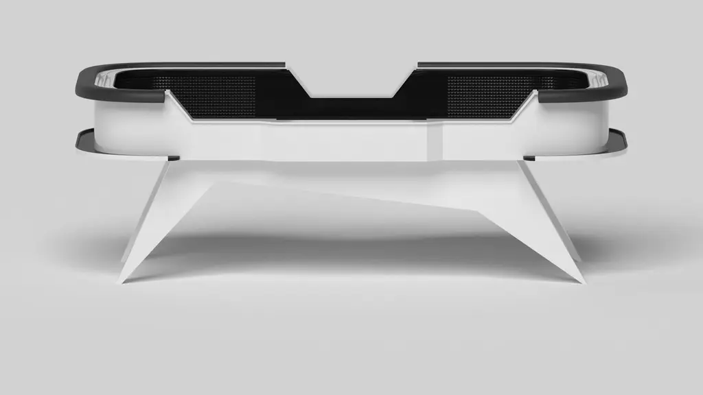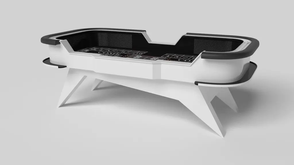 Simple yet sophisticated, the Mantis craps table puts a fresh, modern spin on a classic four-legged design. Sharp angles and tapered legs provide sleek stability.Size:117”X60”X42”Custom Sizes Available Per Request