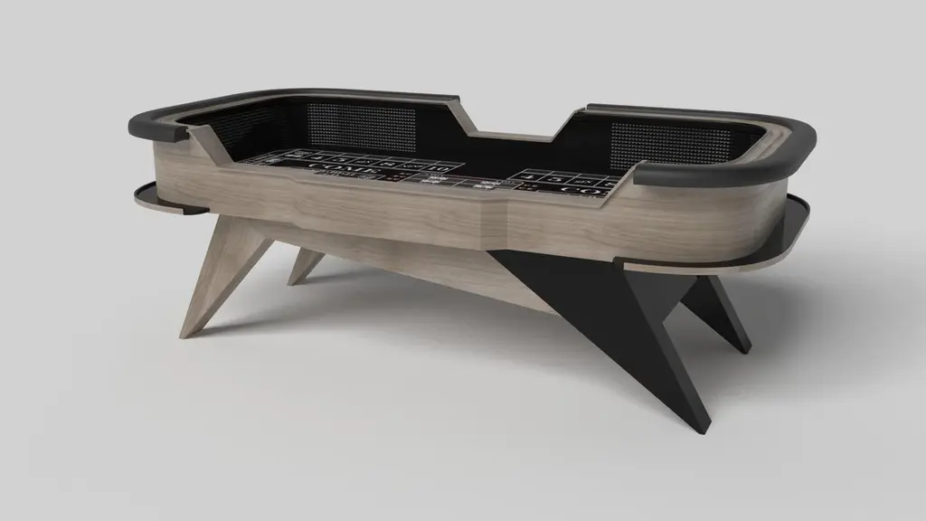 Simple yet sophisticated, the Mantis craps table puts a fresh, modern spin on a classic four-legged design. Sharp angles and tapered legs provide sleek stability.Size:117”X60”X42”Custom Sizes Available Per Request