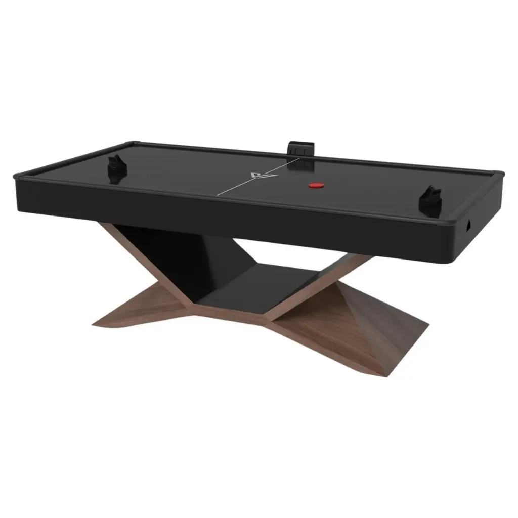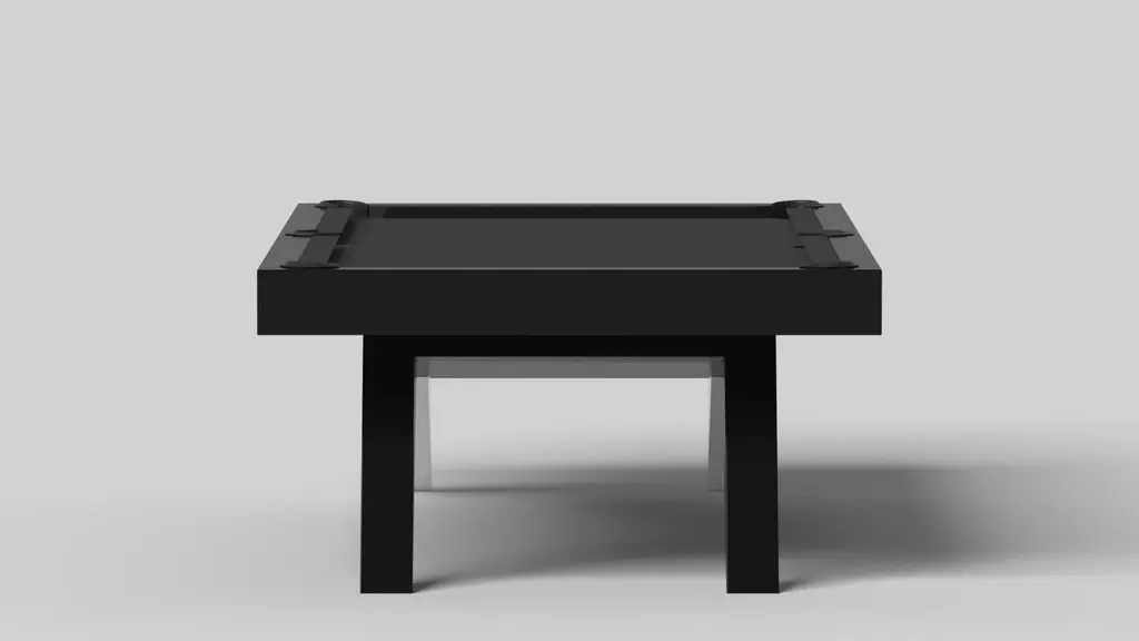 Simple yet sophisticated, the Mantis pool table in black with brushed aluminum puts a fresh, modern spin on a classic four-legged design. Sharp angles and tapered legs provide sleek stability, while contrast metal trim adds an air of exuberance and an energetic spirit. Handcrafted from black oil-stained maple wood, this table features a bold design with a smooth black top and brushed aluminum accentsSize:7 Foot - 91”X52”Playing Area Of 39”X78”8 Foot – 101”X57”Playing Area Of 88”X44”
