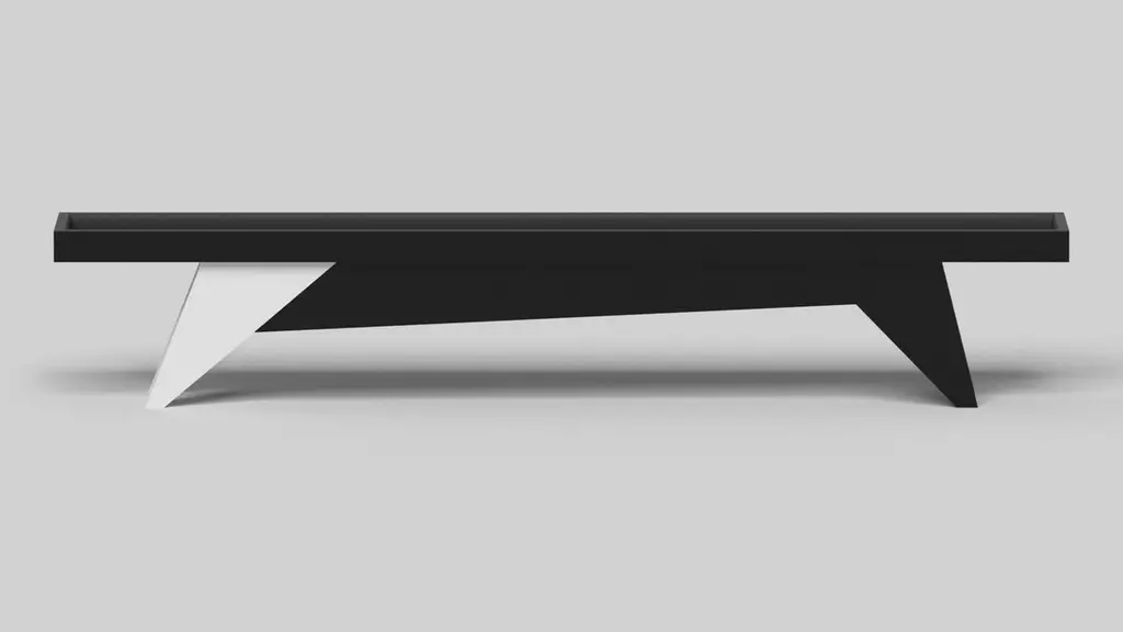 Simple yet sophisticated, the Mantis shuffleboard table puts a fresh, modern spin on a classic four-legged design. Sharp angles and tapered legs provide sleek stability.Size:14 Foot - 168”X32”X34”Playing Area Of 152”X20”