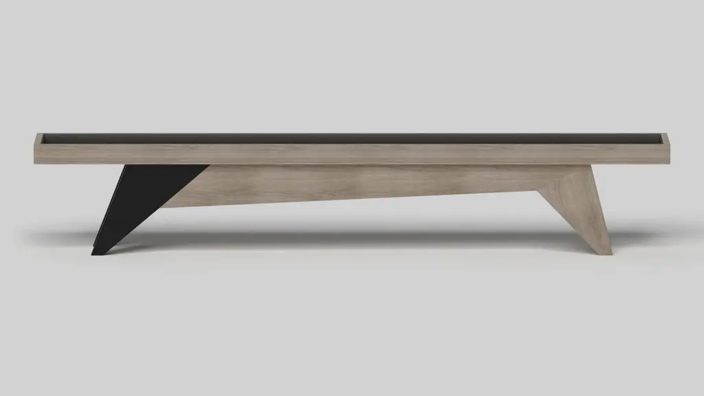 Simple yet sophisticated, the Mantis shuffleboard table puts a fresh, modern spin on a classic four-legged design. Sharp angles and tapered legs provide sleek stability.Size:12 Foot - 144”X32”X34”Playing Area Of 128”X20”