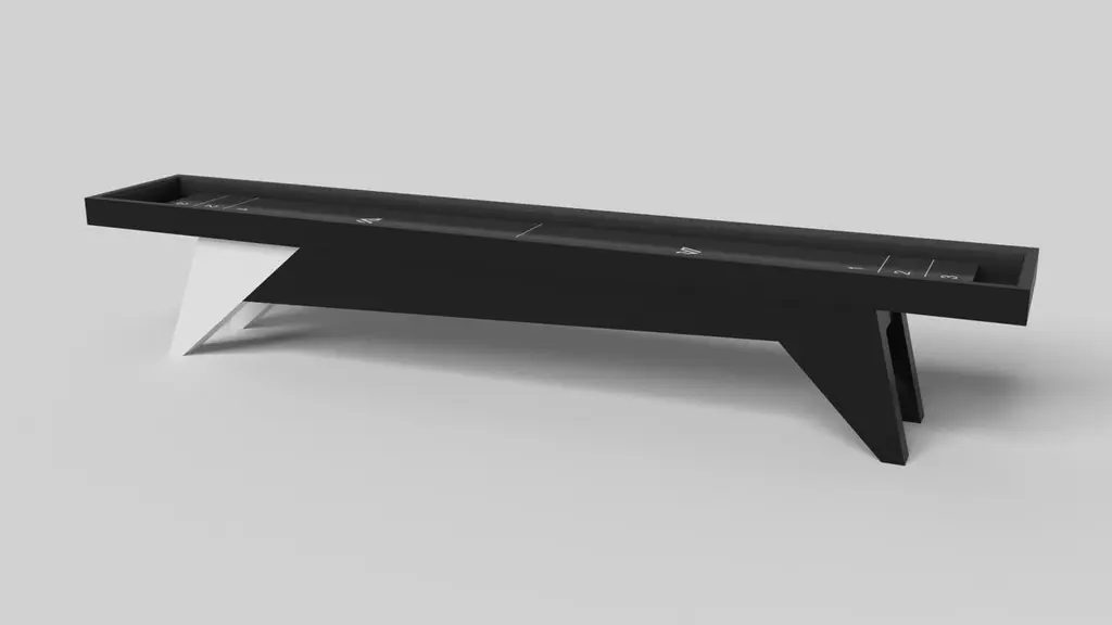 Simple yet sophisticated, the Mantis shuffleboard table puts a fresh, modern spin on a classic four-legged design. Sharp angles and tapered legs provide sleek stability.Size:12 Foot - 144”X32”X34”Playing Area Of 128”X20”