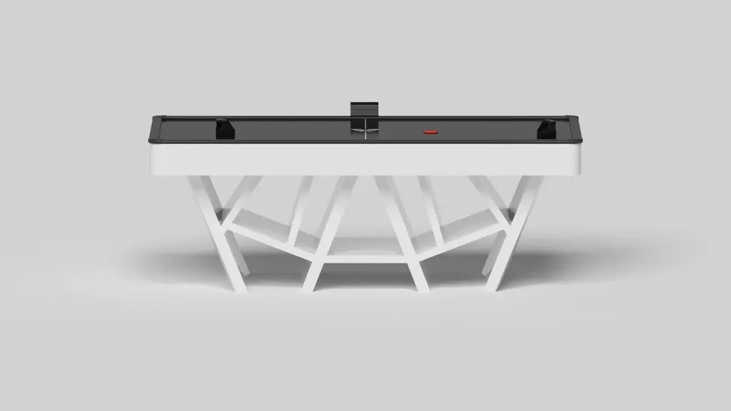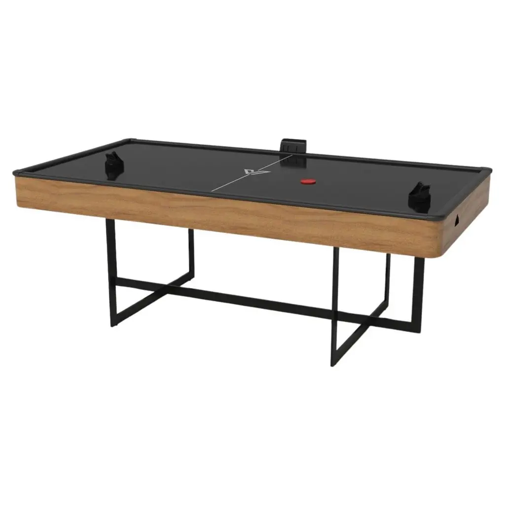With a combination of acute angles, smooth lines, and geometric configurations, the Maze air hockey table in walnut is characterized by a labyrinth-inspired base with a mystifying motif. Beautifully detailed with a smooth black top for game play, this luxury walnut wood game table exudes cutting edge style and contemporary charm, making it a fascinating focal point in any room.Size:88”X45”X31”