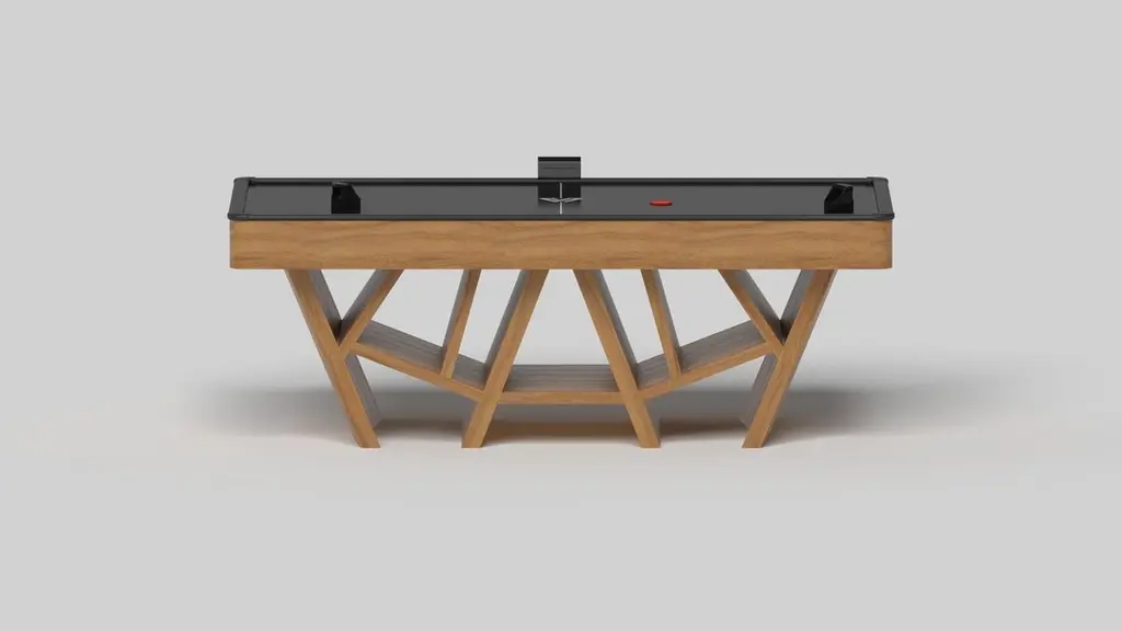 With a combination of acute angles, smooth lines, and geometric configurations, the Maze air hockey table in walnut is characterized by a labyrinth-inspired base with a mystifying motif. Beautifully detailed with a smooth black top for game play, this luxury walnut wood game table exudes cutting edge style and contemporary charm, making it a fascinating focal point in any room.Size:88”X45”X31”