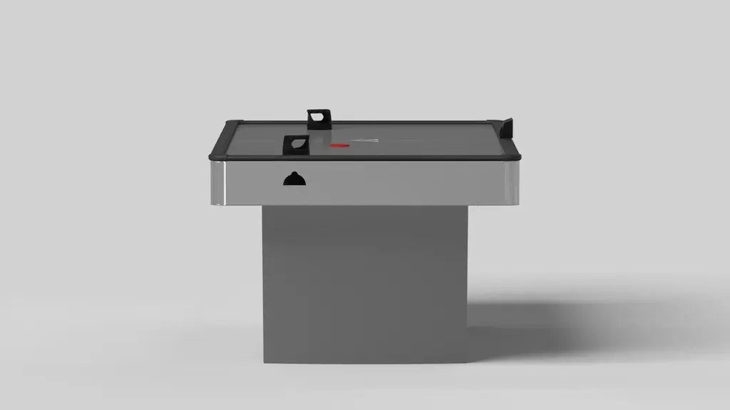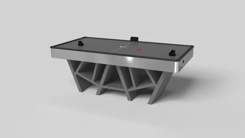 With a combination of acute angles, smooth lines, and geometric configurations, the Maze air hockey table in walnut is characterized by a labyrinth-inspired base with a mystifying motif. Beautifully detailed with a smooth black top for game play, this luxury walnut wood game table exudes cutting edge style and contemporary charm, making it a fascinating focal point in any room.Size:88”X45”X31”