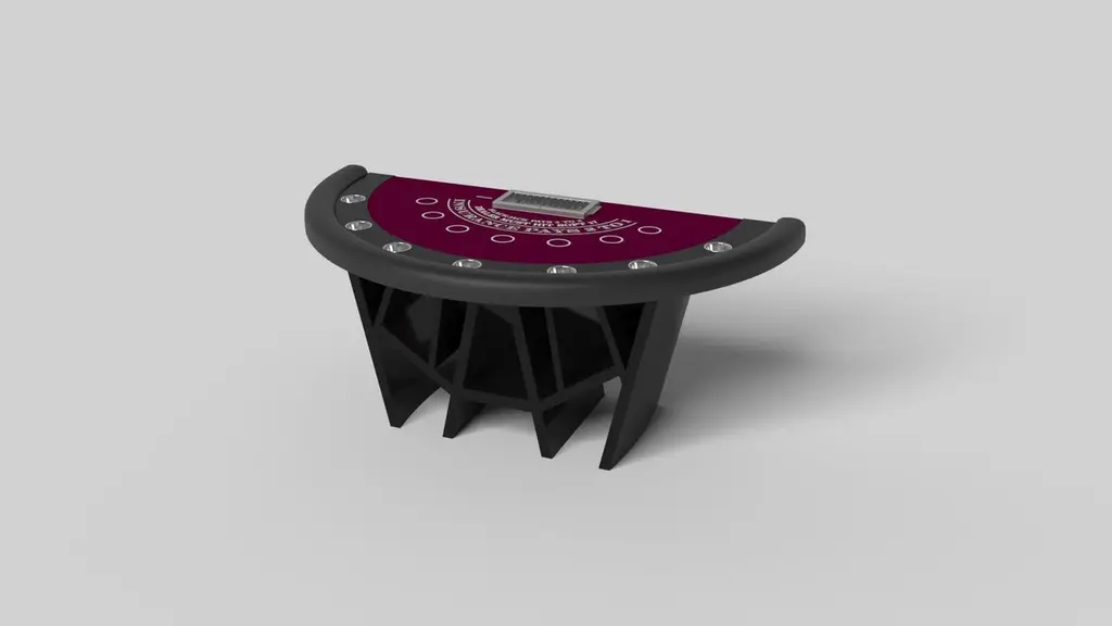With a combination of acute angles, smooth lines, and geometric configurations, the Maze blackjack table in brushed aluminum is characterized by a labyrinth-inspired base with a mystifying motif. Beautifully detailed with a casino-grade top for game play, this luxury game table exudes cutting edge style and contemporary charm, making it a fascinating focal point in any room.Size:88”X46”X30” (Bar Height)Custom Sizes Available Per Request