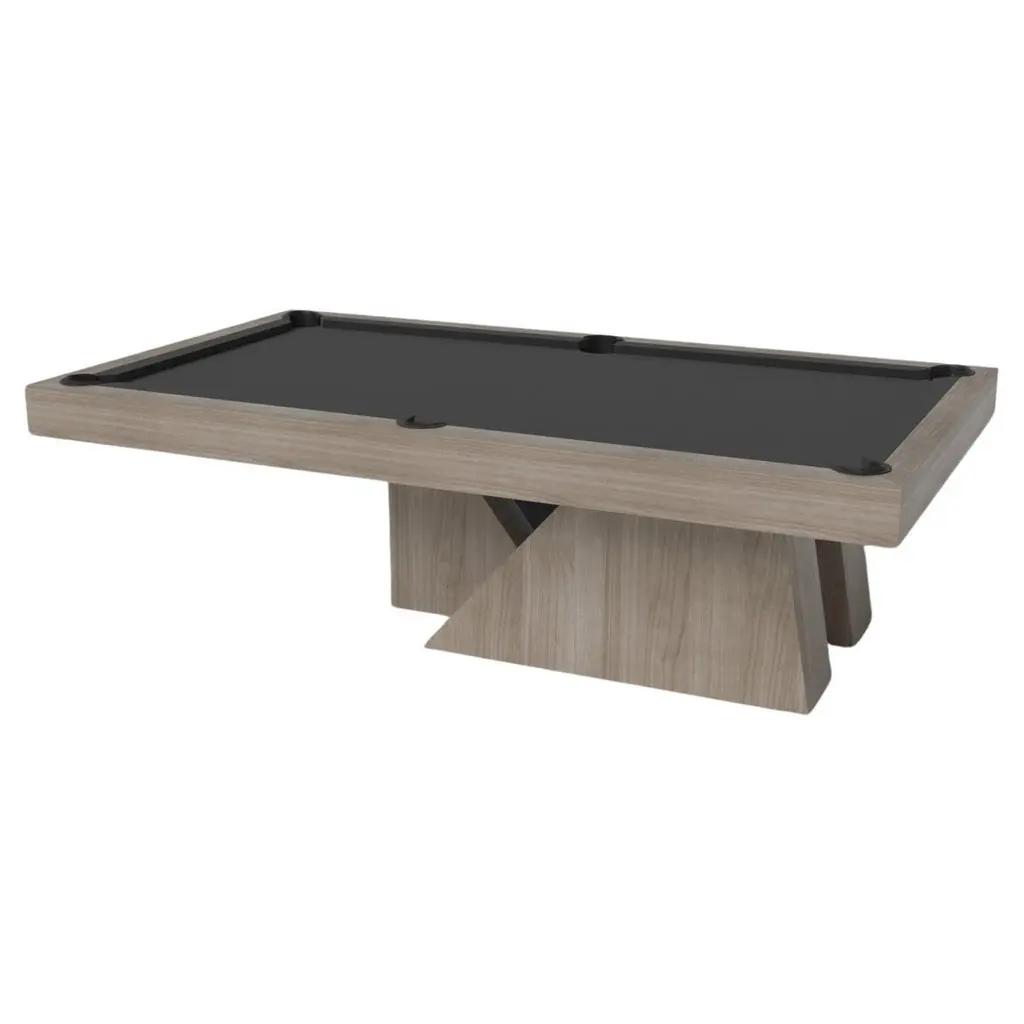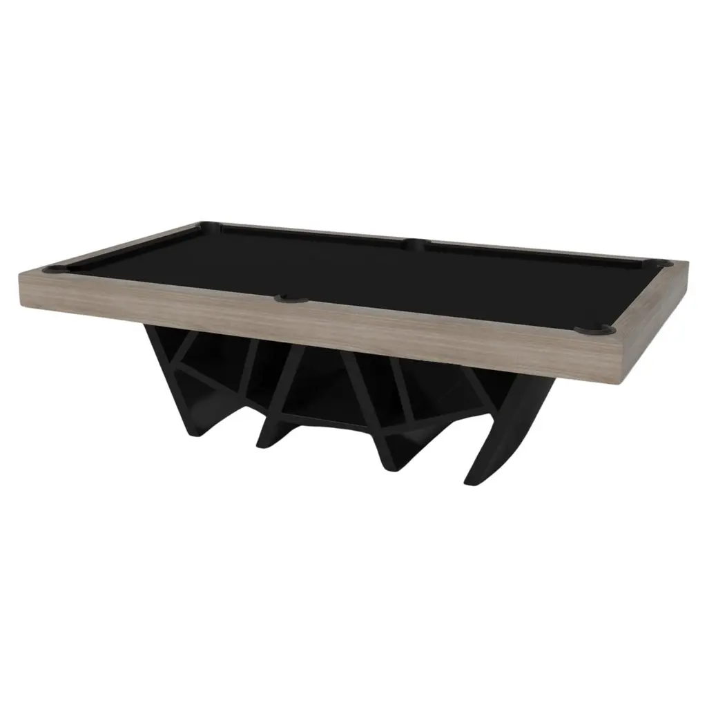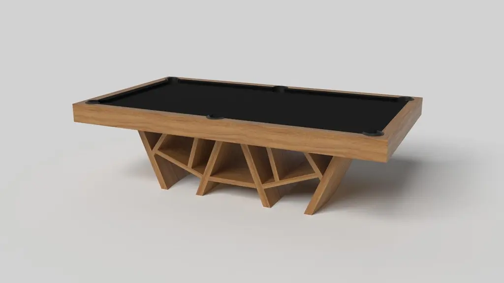 With a combination of acute angles, smooth lines, and geometric configurations, the Maze pool table in walnut is characterized by a labyrinth-inspired base with a mystifying motif. Beautifully detailed with a smooth black top for game play, this luxury wood game table exudes cutting edge style and contemporary charm, making it a fascinating focal point in any room.Size:9 Foot – 113”X63”Playing Area: 100”X50”