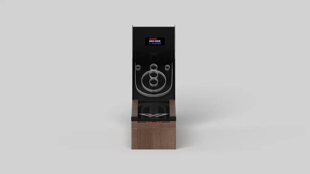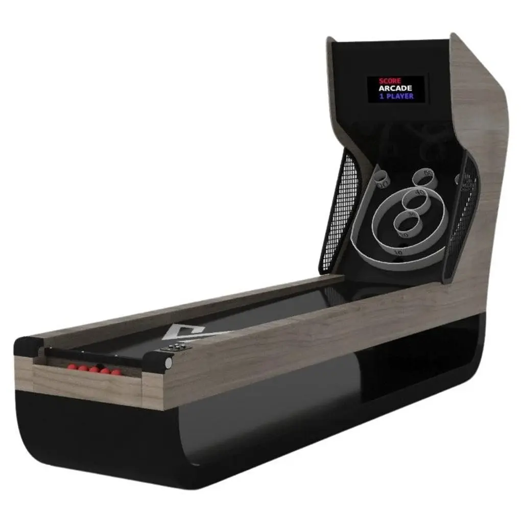 With a combination of acute angles, smooth lines, and geometric configurations, the Maze skeeball game is characterized by a labyrinth-inspired base with a mystifying motif. Detailed with built-in digital components, this luxury wood game exudes cutting edge style and contemporary charm, making it a fascinating focal point in any room.