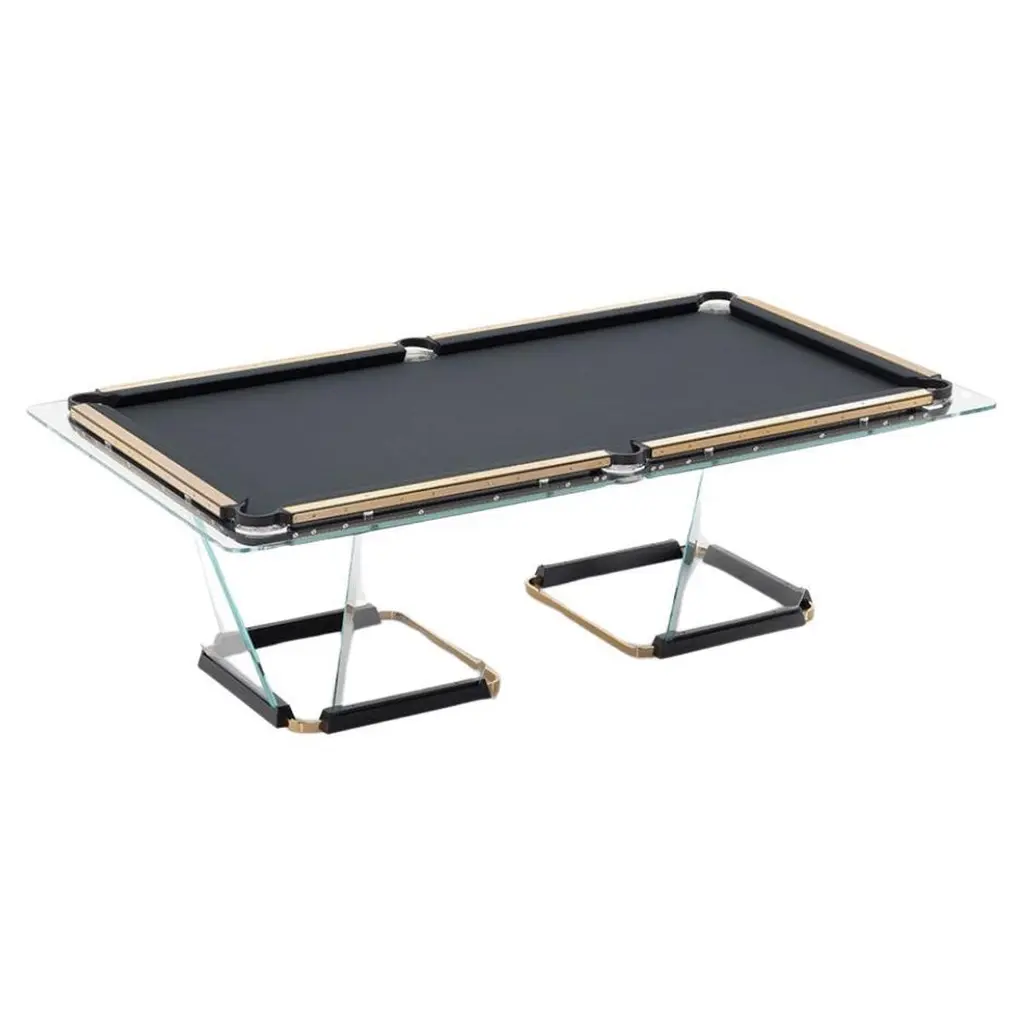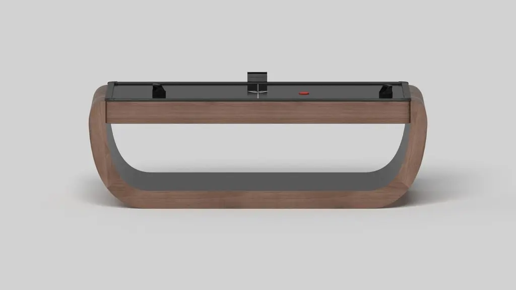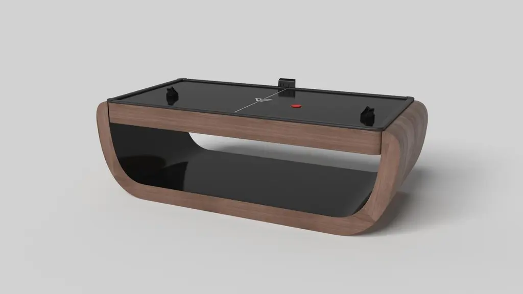 Handcrafted with intricate accents and a precision-carved curved base, the Sid air hockey table in black encompasses a series of smooth edges, distinctive details, and unconventional elements in one unique expression of luxury design. Built by hand from solid maple wood, this contemporary game table boasts a signature blend of expert craftsmanship and novel composition.Size:88”X45”X31”