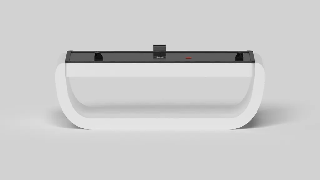 Handcrafted with intricate accents and a precision-carved curved base, the Sid air hockey table in black encompasses a series of smooth edges, distinctive details, and unconventional elements in one unique expression of luxury design. Built by hand from solid maple wood, this contemporary game table boasts a signature blend of expert craftsmanship and novel composition.Size:88”X45”X31”